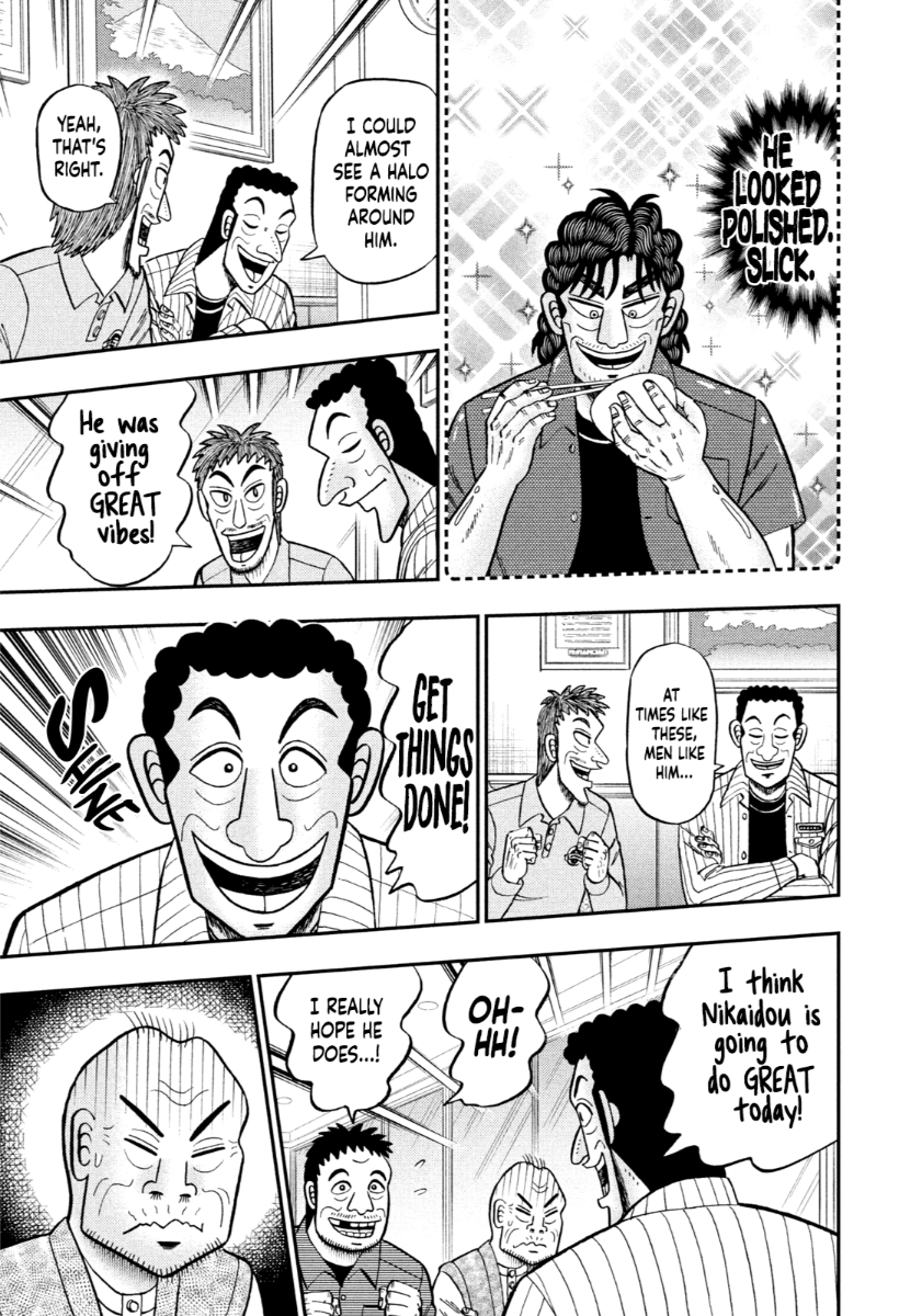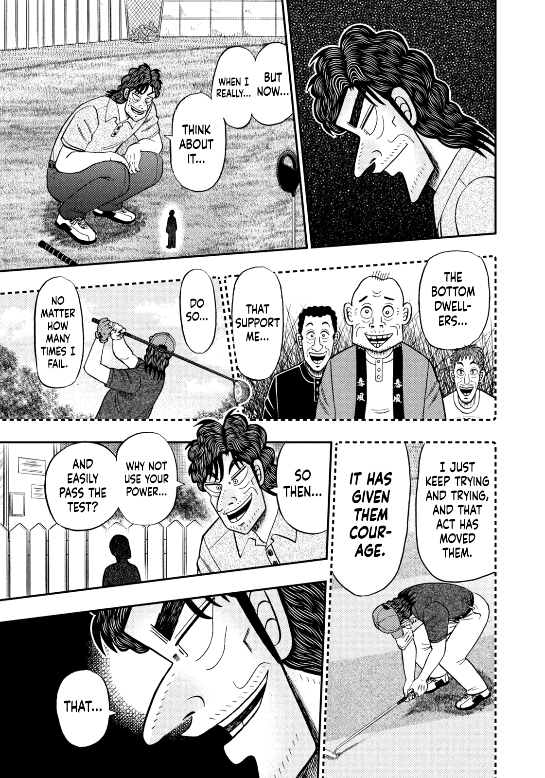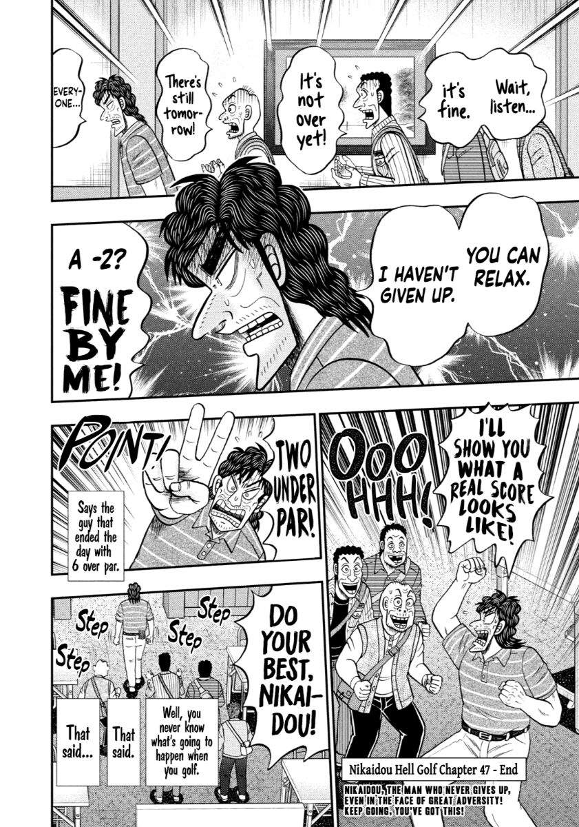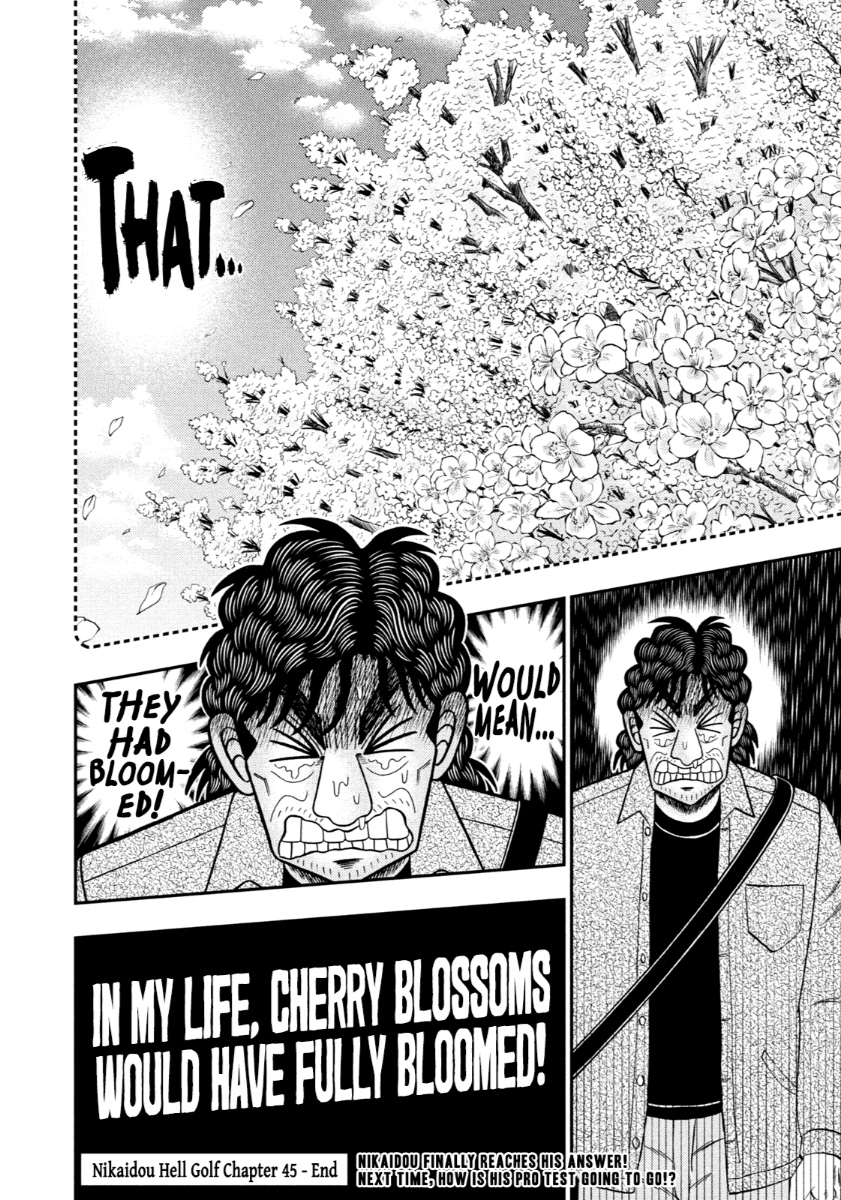 >>284859981Thanks OP. I was going to dump these chapters once Chapter 48 dropped so that we could have all of the available chapters at once (assuming 48 drops on New Years) but this works too. Good set of chapters, I found myself enjoying 45 the most in this set; solid chapter to end before he started the PGA tests to start the dilemma between using his second chance and completing the tests honestly. Granted, he's already buckling to the thought of using his second chance after the first day because it's so tempting in his precarious position, but it's still an interesting conflict for Nikaidou to work through; not sure how he'll turn out in either case though, that's also interesting to think about. I suppose I could dump the Kengan Omega-Kaiji special with Chapter 48 if I decide to dump the lone chapter the day of release to make up for it being a single chapter dump.