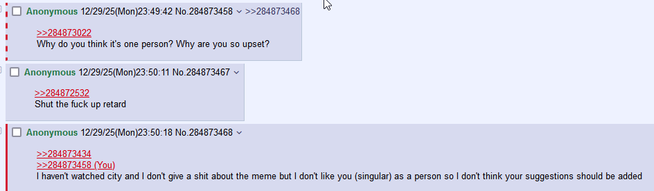 >>284868005>That takes away space from real memes and anime that were released on /a/ in 2025.Such as..?