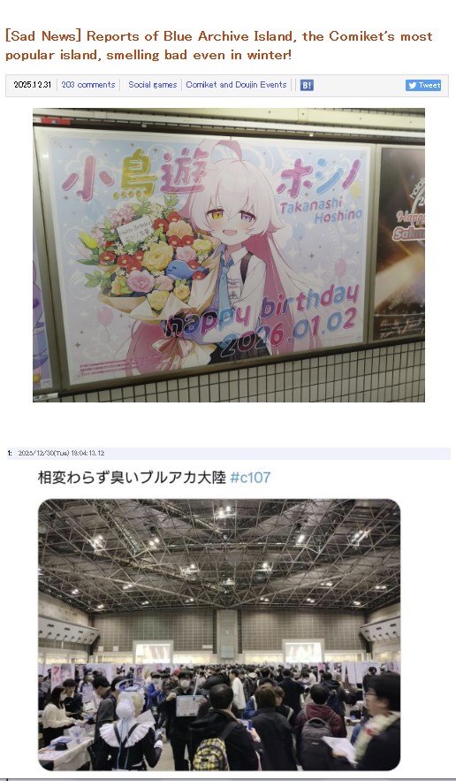 People have been twitting that the blue archive part of the comiket smells like shit every comiket since 2023 or something, this feels like is just butthurt japanese that koreans are dominating their convention