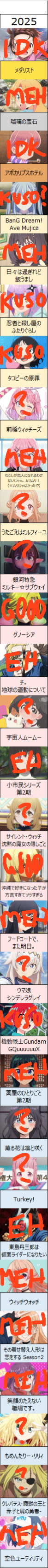 >>284912593Over 1k anime series debuted in 2025, being on this list at all is a mark of distinction.