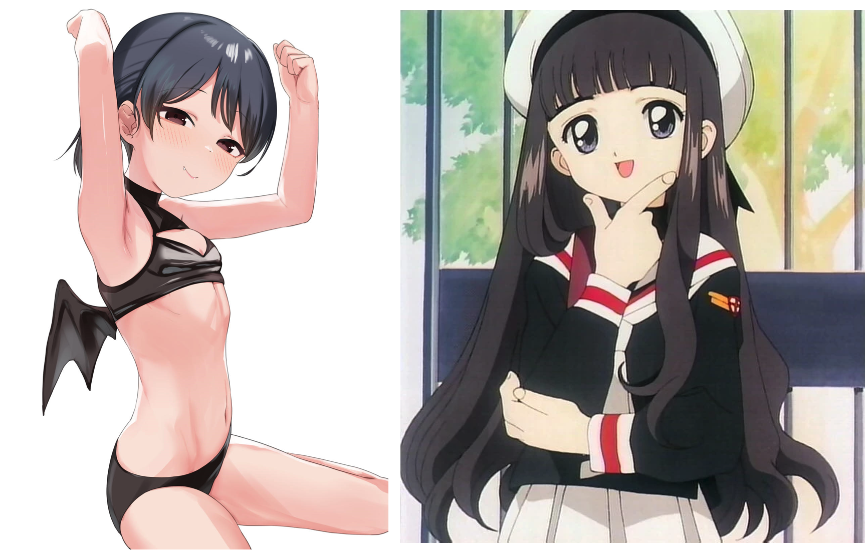 Requesting Tomoyo Daidouji wearing the outfit on the left, bonus if you give her black nail polish on her toes and fingers too
