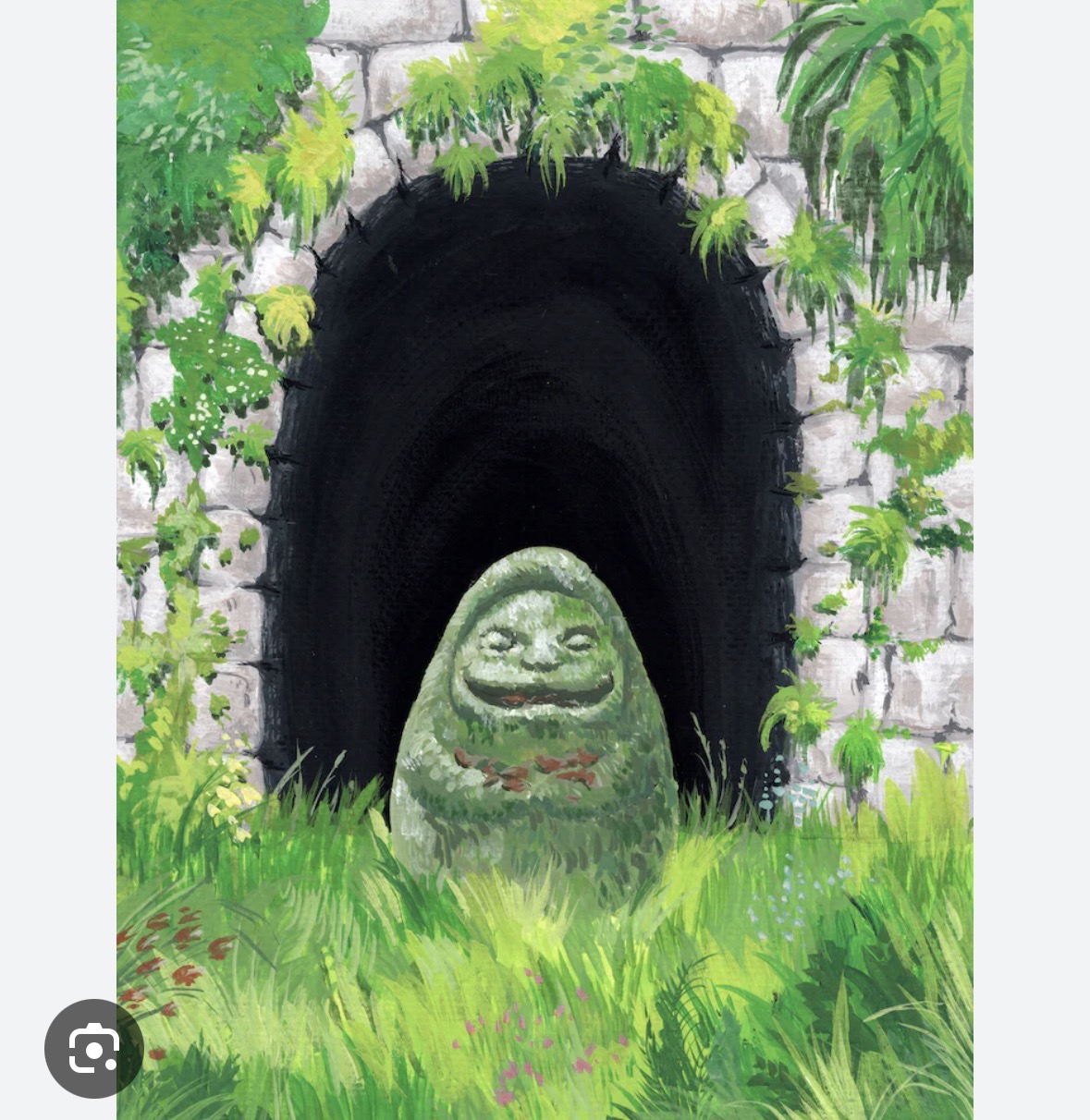 Requesting a scene of a mysterious downbeat-vibe Japanese forest, maybe with some cool artifacts like this