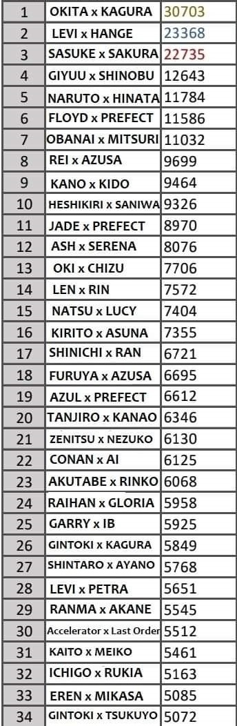 >>284997445You get the most popular straight ship in that top from fujo hellscape that is Gintama.