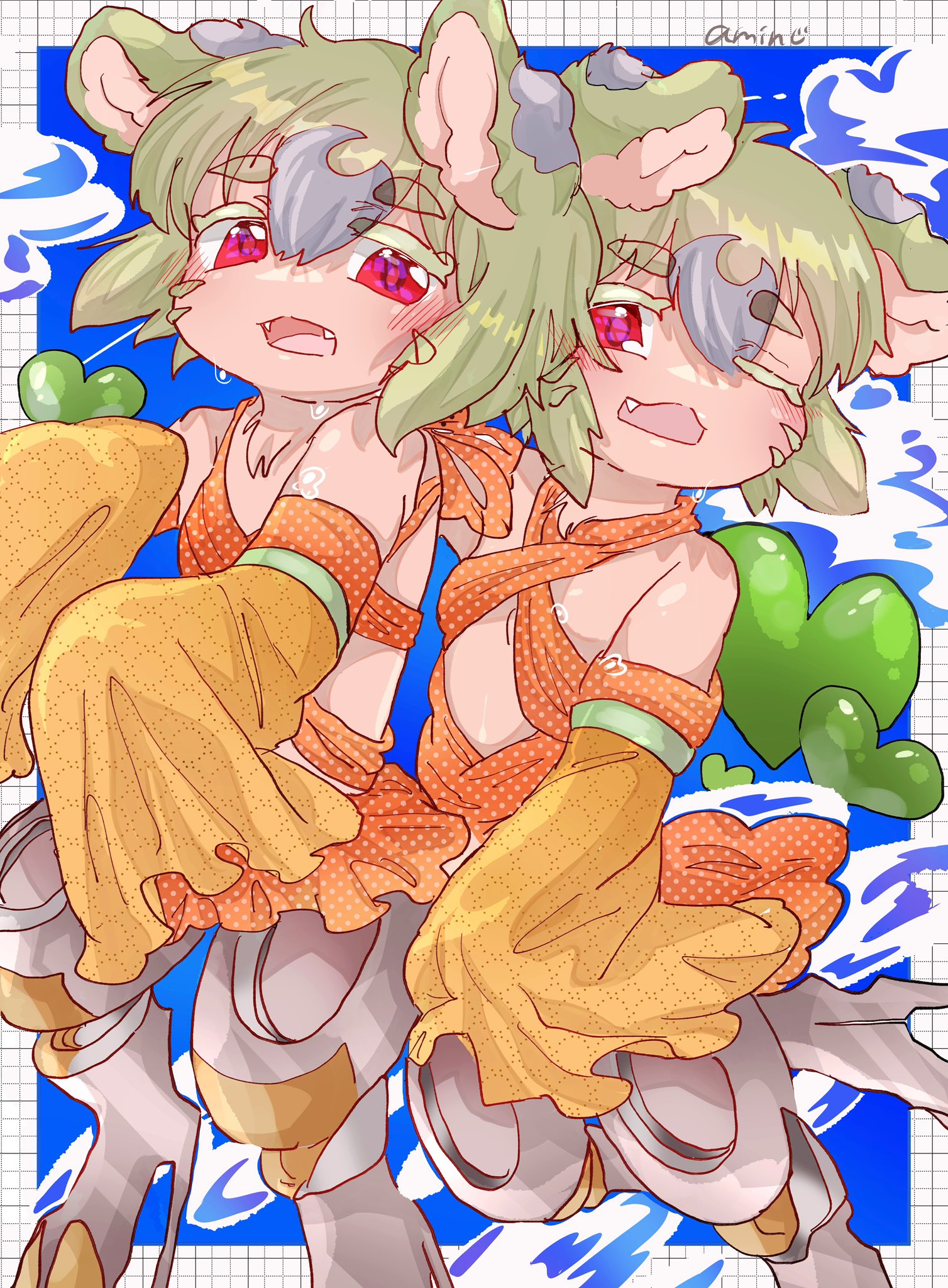 >>285068823I think Prushka would definitely be implored to explore her sexual curiosity with Riko, she trusts her enough to be open about those things.I imagine something like rikos smaller chest despite their similar age would lead to an intrusive inspection of her body, mimicking intimate behaviour she’s seen inside her books, Riko might be a little coy, but I think she’d easily submit to the sensations with her