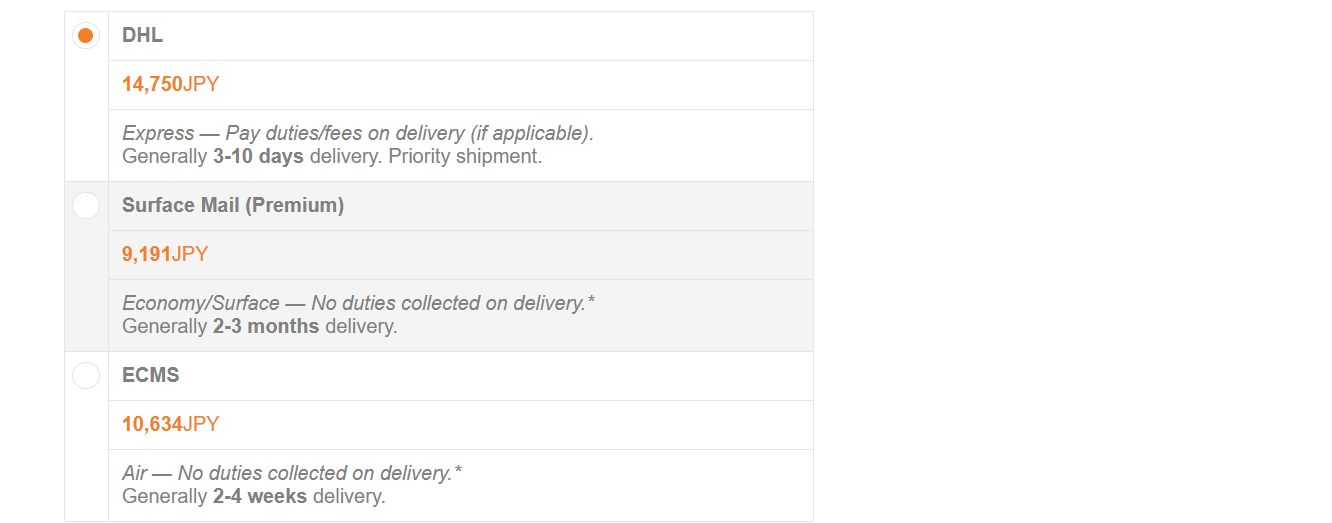 >>285089723I bought used Manga from mandarake recently, and DHL seemed fine. They used the right codes for it to be tariff and DHL tip free at least if you are in the US