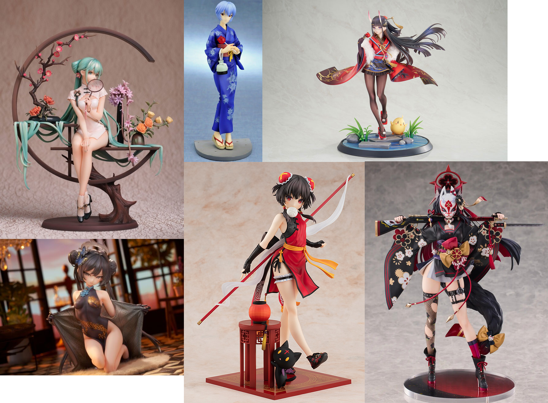 >>285089703I really like figures wearing elegant traditional outfits like kimonos or qipao with a kinda cute wholesome feeling. Pic related is some examples I found on MFC (their search is awful). I love the elegant wholesomeness even more than just plane lewdness. And of course I buy figures of my favourite characters even if they don't fit that style. That said I will always be weak to a JK in a competition swimsuit.