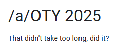 The last of this season's shows are coming to an end, and with them the 2025 anime year will come to a close. Now it's time to look back on the year and remember what we liked, what we hated, and how shit our collective taste was before 2026 rolls around and we do it all over again.Categories include best anime, worst anime, most surprising anime, most disappointing anime, best OP, best ED, best OST, best scene, best girl, best boy, best seiyuu, shows watched, and shows dropped.https://docs.google.com/forms/d/e/1FAIpQLSeuAFOWi1eG1SrnuhnCEp4a6sNsajbxzUING1QMnmEMmPOKew/viewform