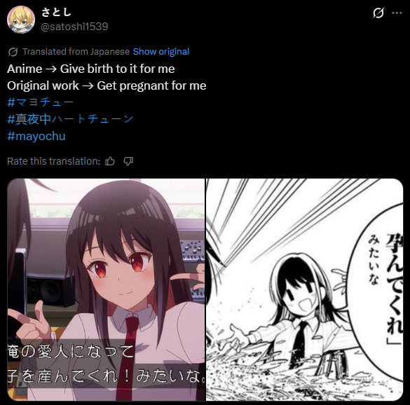 >>285097264yeah i just finished reading the whole thread lolit's fine, i still love mayotuna even if the anime is underwhelming