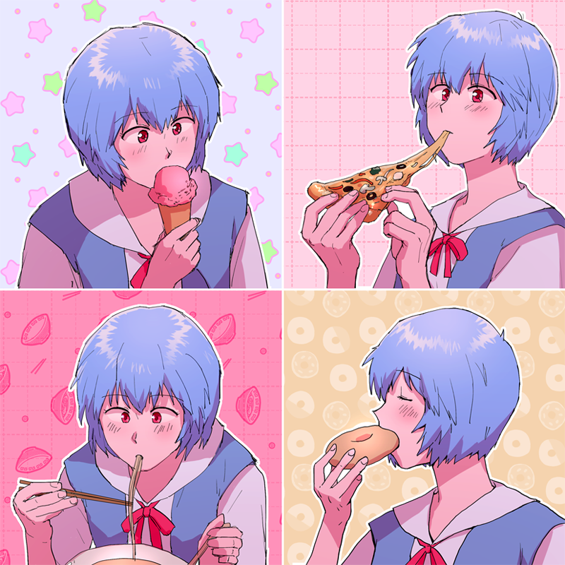 >>285097370Rei specifically says she dislikes eating meat too.