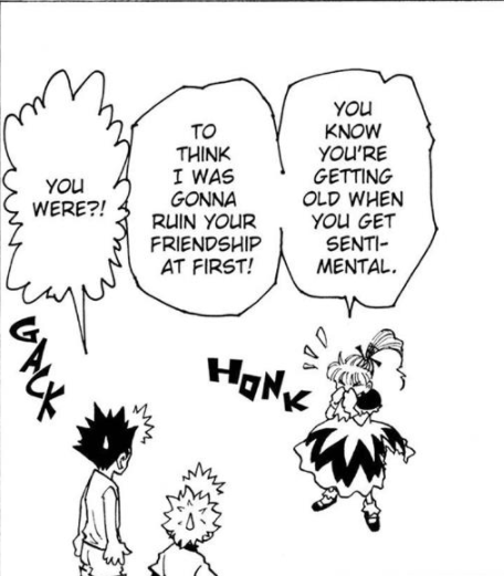 what's funny about killua is that he always got mad at gon when talking about how close they were and his "best friend" but later he wishes for gon to call him friend again.