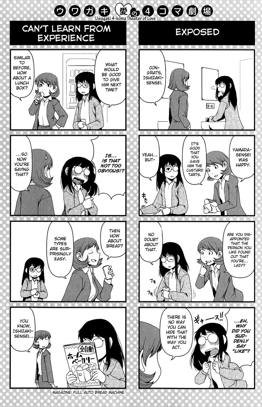 What was your reaction when reading through a manga and suddenly came to an abrupt end? Consumed by rage? Filled with confusion? Drown in disbelief and denial? Perhaps, plagued with uncontrollable laughter at the absurdity.Nevertheless, come. Relive, share with others, or experience for yourself the first time some of these short lived (maybe justifiably so) creations.Make valuable lessons be learnt. And never forget, the true ending was the friends we read questionably sourced Japanese cartoon drawings on a handicraft forum with along the way.It appears the destination has files with the same names. What would you like to do?>It's fairly obvious to Terui Chiaki that her classmate Ajikawa Yoshio has a crush on her. He is completely not boyfriend material in her eyes and, even if he was, Chiaki already has a boyfriend. Their mysterious teacher Mr. Yamada sees this relationship between the two students and offers an experiment. He is able to make copies of people and objects and does so with Chiaki, creating a copy of her, except the copy has no knowledge of her boyfriend. Yoshio will hit on the Chiaki copy, who is named Koaki, and he'll try to make her fall in love with him. After a specified amount of time, the copy and original will be combined back together and which ever love is stronger between the current boyfriend and Yoshio will overwrite all other emotions. So this love experiment begins...Chapter 6 >>285100979