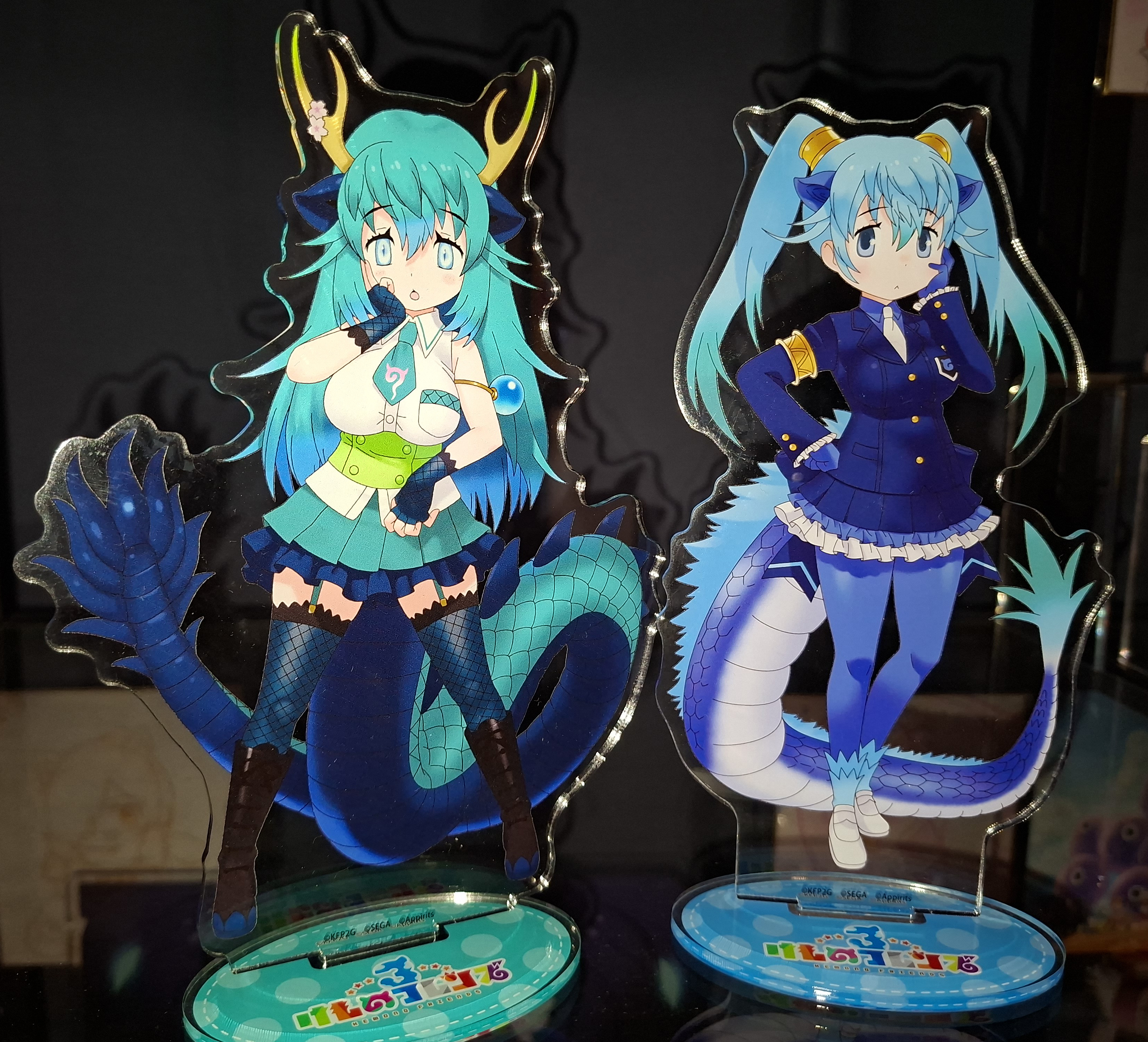 >>285128579Acrylics of both the god and dragon forms of Seiryu. They look so good together.