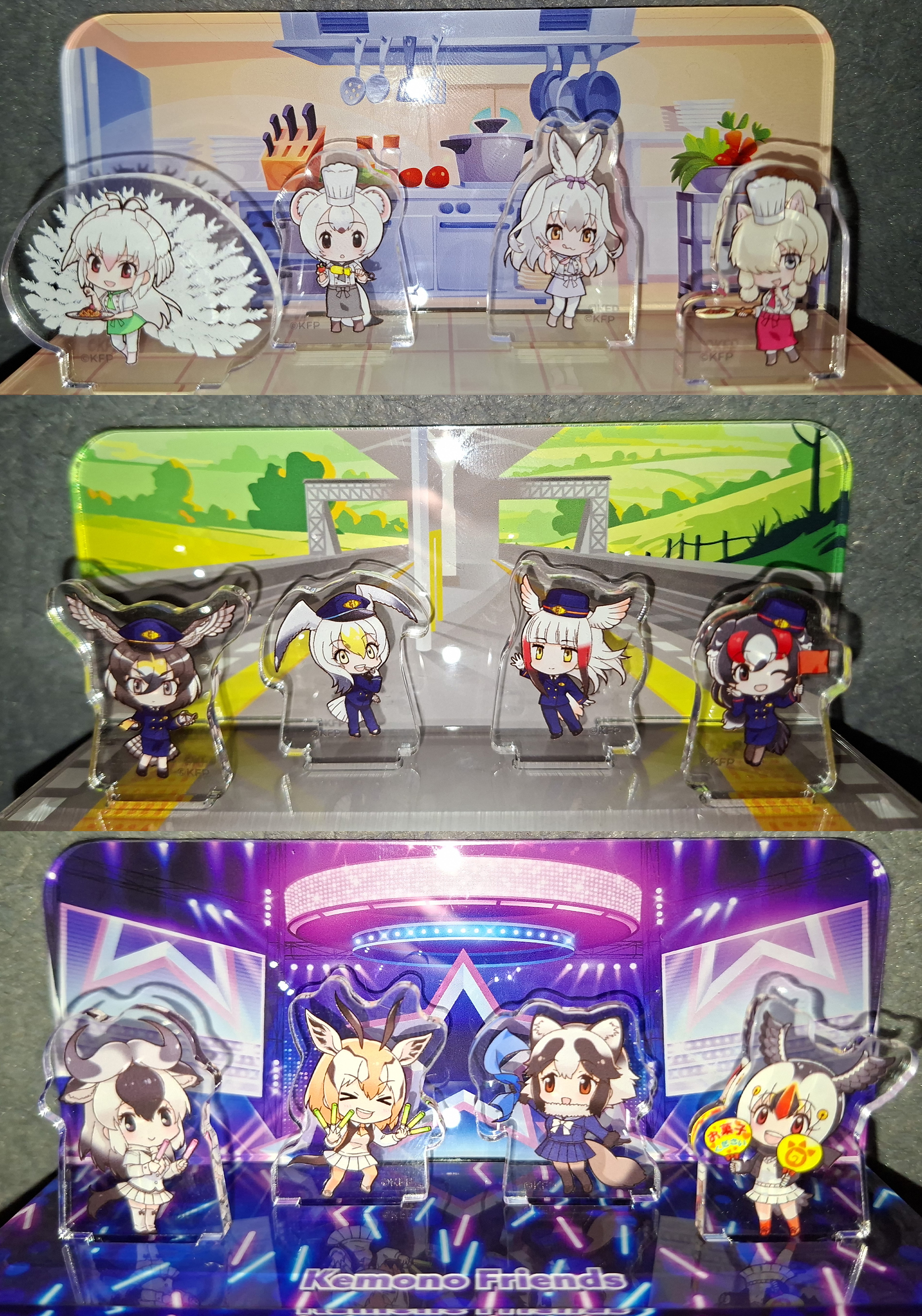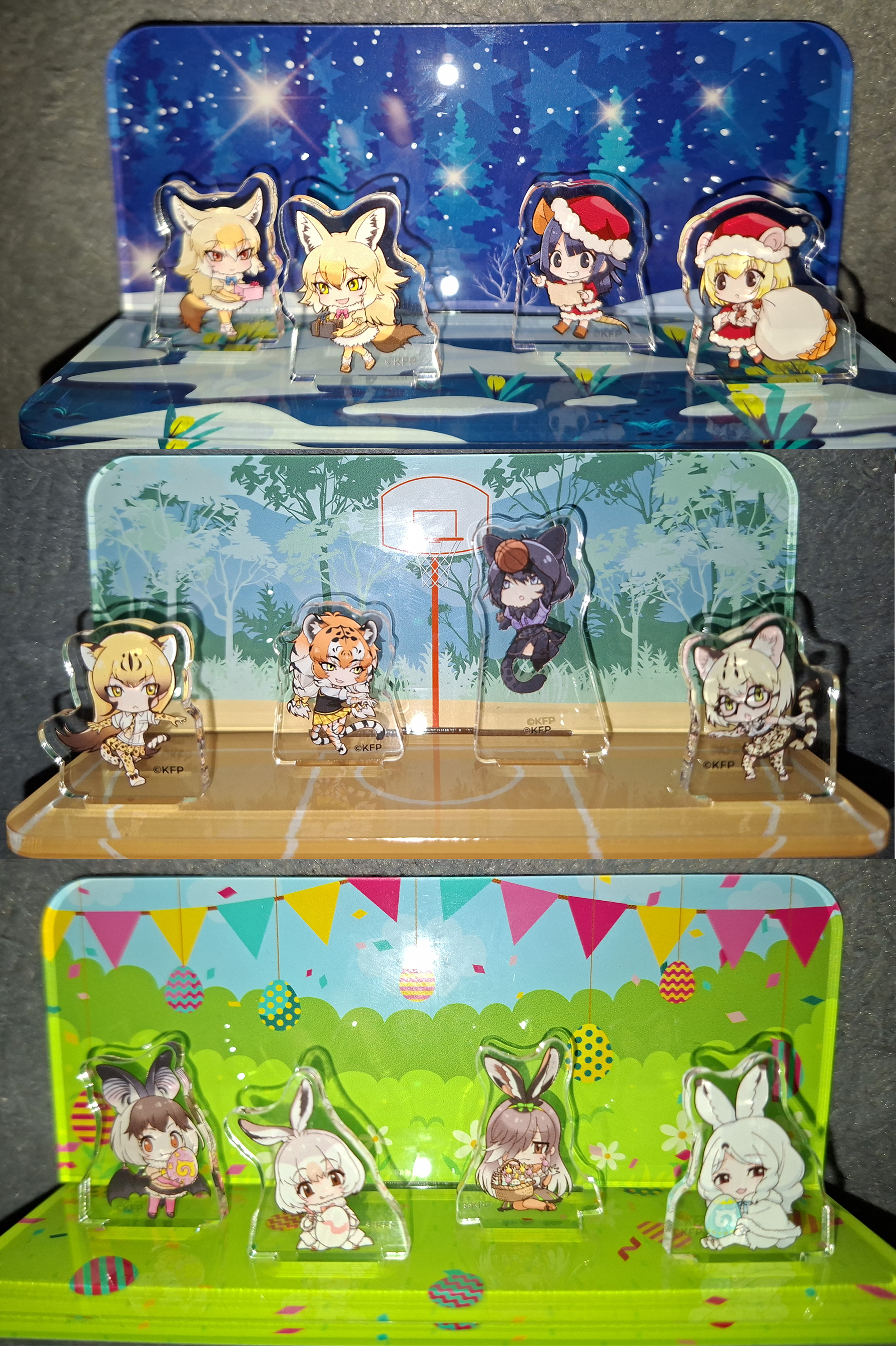 >>285128723>>285128734>>285128751happy new year kemonoanon!super cute displays. how large are they? model car display cases could work for that size. then put them on tiered stands.