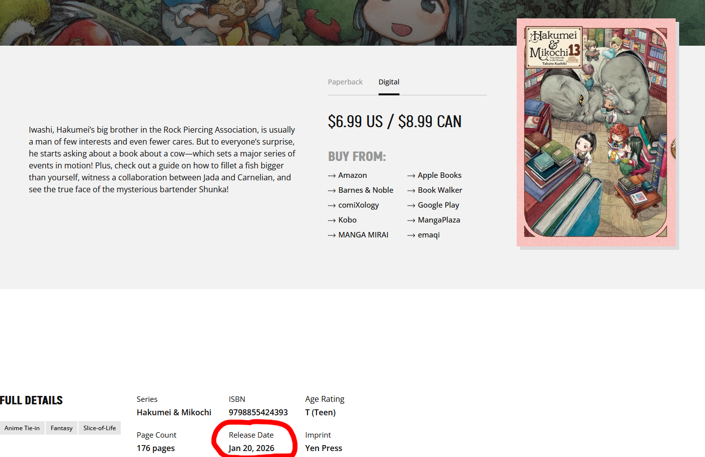 english translation of volume 13 comes out on January 20th , there will be cows and ruins
