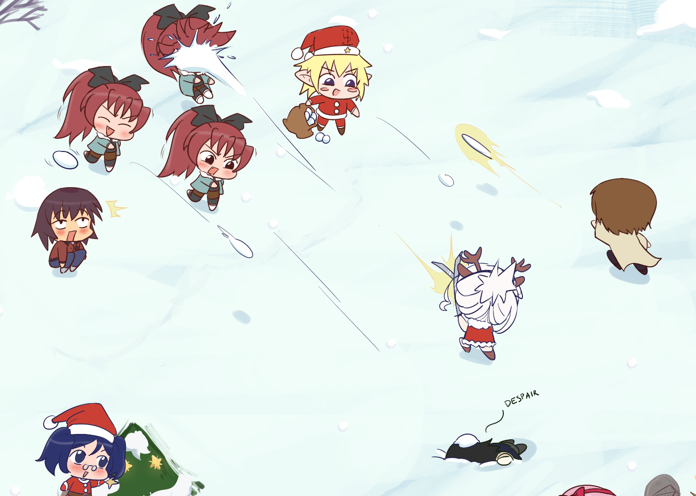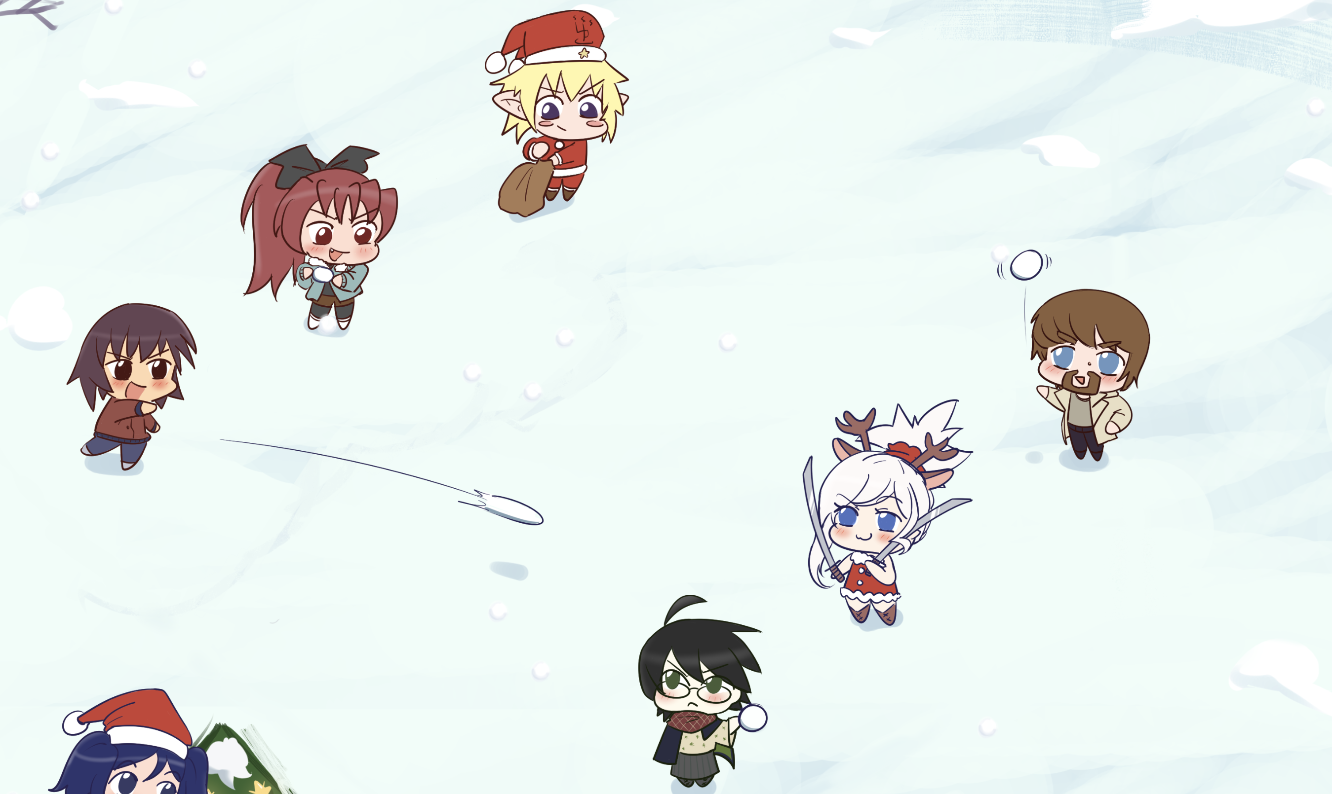-Having a snowball fight