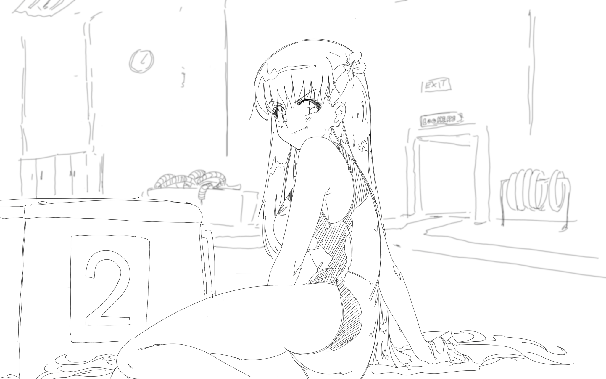 - In an one-piece swimsuit