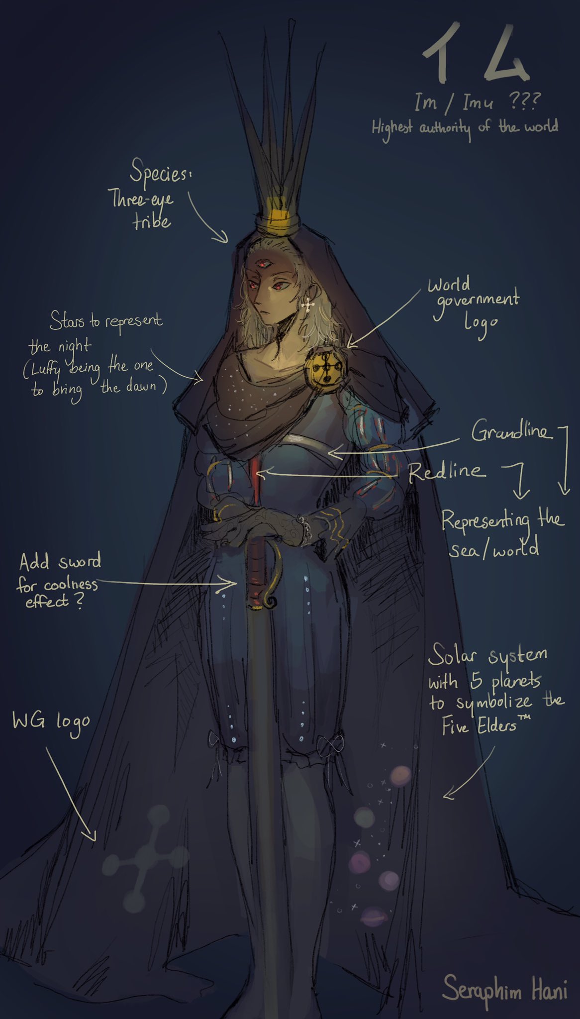 Imu probably hates the mermaid princess Poseidon for sinking the world much like Joyboy and Davy D Jones.