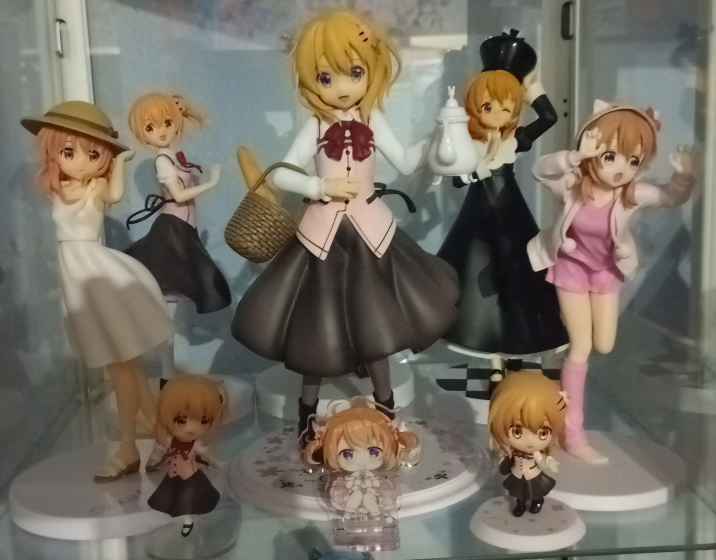 >>285180629I have started with one for each gochi (with exception of Chiya), but then I kept finding cute figs so I have ended up accumulating them, I have also some other acrylics I haven't shown.If I manage to find a cocoadoll, I'll apply that kind of reasoning to dolls.