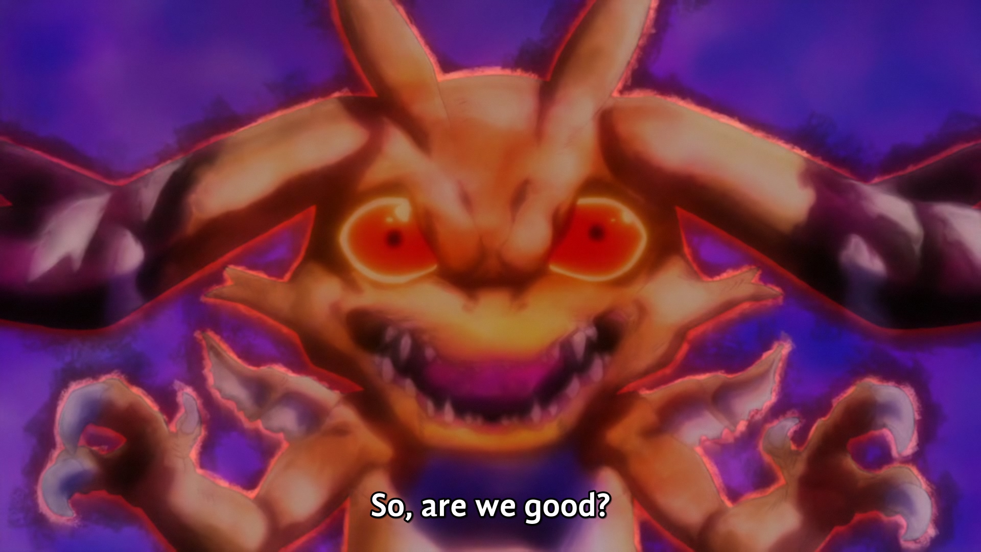>>285204093It's a common thing this season, this is what retards get for not supporting literal translations and instead wanting localization.>>285205390He makes non optimal and moralfag choices like sparing his enemies which comes back to bite him each time.His evolution paths are the one thing he does right given the choices.