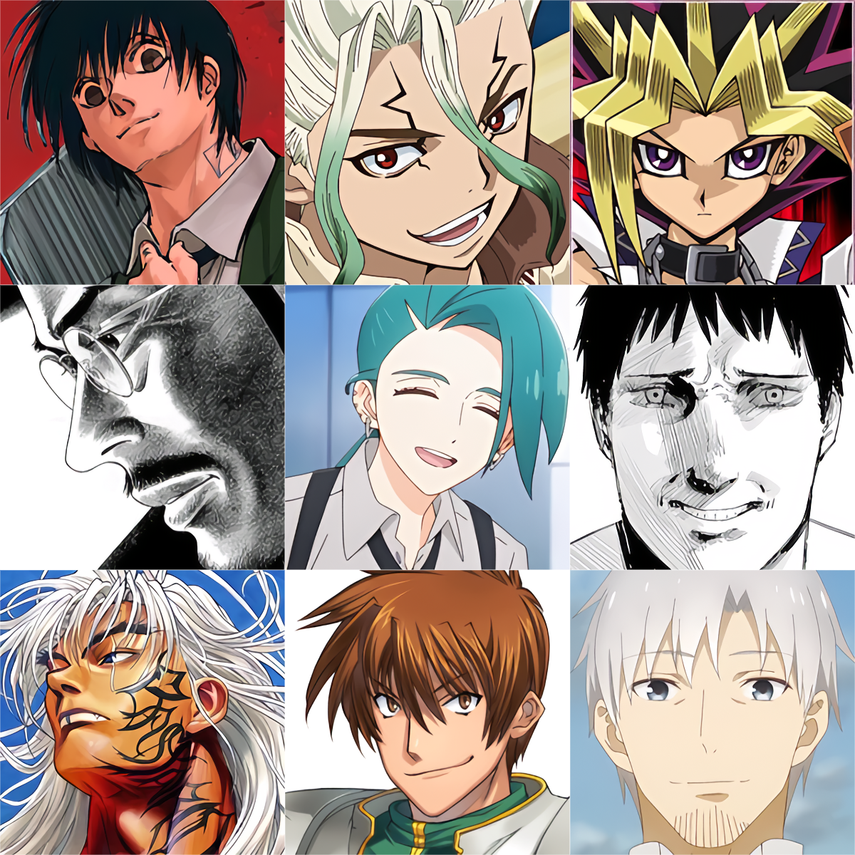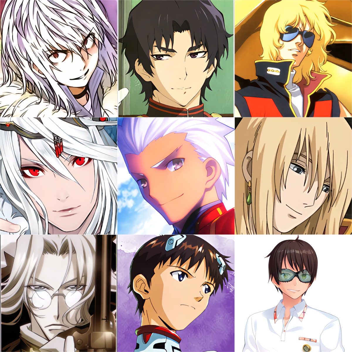 >Could easily make a 6x6 for anime girls right now>Can only think of 9 male characters that i like