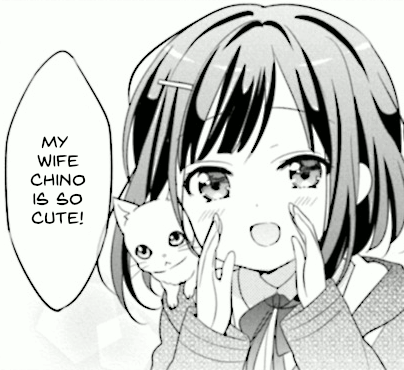 >>285193671She's just like me. Except Cocoa doesn't exist on the same plane of existence as I do, and isn't obsessed with me.Man, Chino really is an ungrateful cunt.