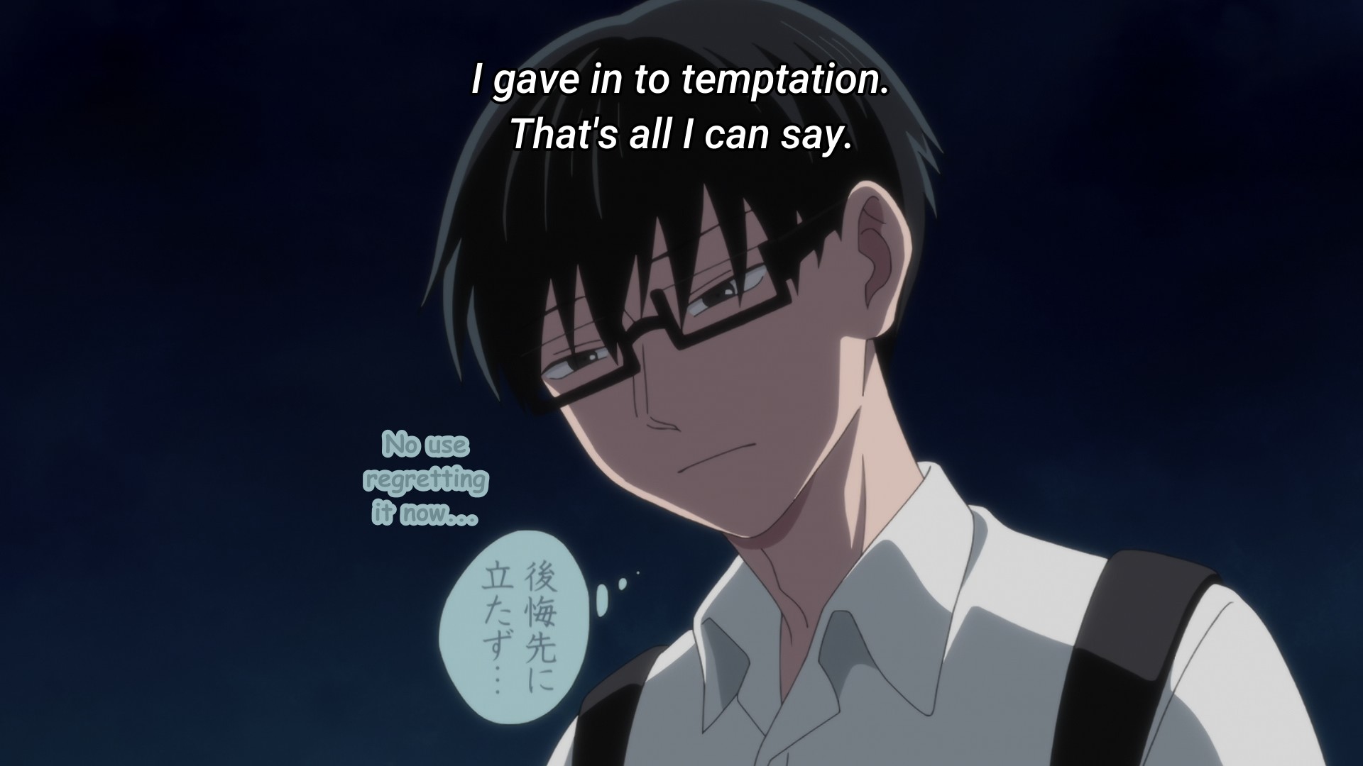 Good episode. I kinda prefered the "I'm a huge dork" translation rather than "I'm a pathetic human" though