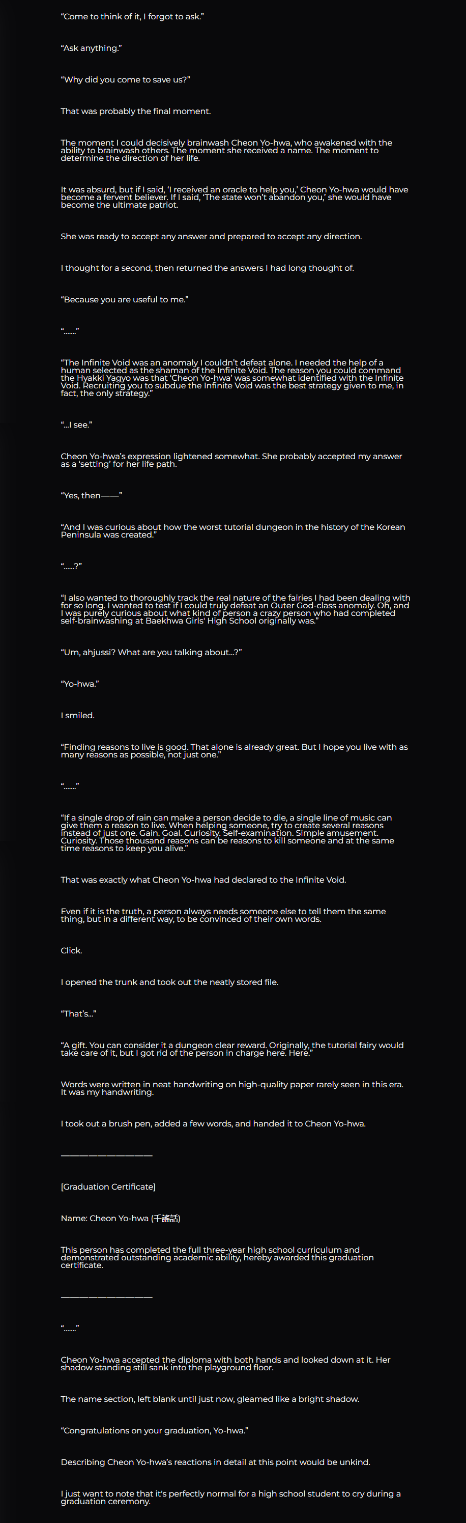 On the other hand DH does it a lot better since it's the only side-character PoVs it regularly veers off into are "the nephew" and the leader of the border city secret agency which both tend to be fun enough most of the time and their PoVs don't overstay their welcome either, never being focused on for more than 2-3 chapters max.