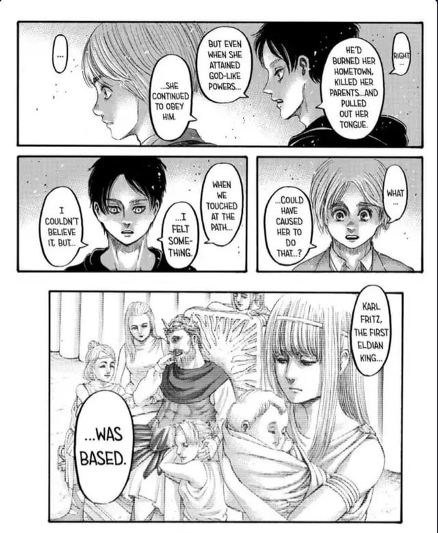 >>285213750>>285214091My issue with Helem is that she's incredbly one note and attracts yurifags. She's fine in small doses, but the mud doll shit just adds more questions. It feels like her and the mindbreak knight would be a pair to subvert other kingdoms by killing troops, making dolls, and sending them back with a brainwashed officer.Helem is just evil and a dyke. Last week we found out she made her parents into dolls because she's such an evil dyke. Wow! >>285214139Elstri is a good charcter because it there are consequences to her actions. Every character moment with her connects to another character. Her getting molested by Helem is boring and I'd rather it be a punch line to an already shit day. There is no breathing room, either. >>285214178My issue with her is that she makes shit boring. Atlus could be interesting, but we are going to a fucking flashback for what at most could be a few panels. This just feels like padding. We've already had Atlus have a existential crisis. This just feels like it'd be better as bonus material. Amber as a whole feels like a character that's going to be better when everything is revealed at once to Julian. Like Amber breaking Titi's arm and getting a kiss from Helem as a reward and Julian gets angry enough to make Atlus shit seem like nerf guns.
