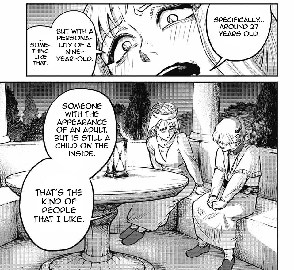>>285205433Thanks for the dump. I thought this chapter was really, really good. I did not expect Amber to even have a personality but the fact that she actual wants to be friendly with people is only going to make it 10x harder to bear when she inevitably runs into Julian and co. Also if she's like Altus, then the moment Angvall reappears within her and she learns what Arkos did to her, that won't be fun either because I'm sure the two of them will be best friends by then.