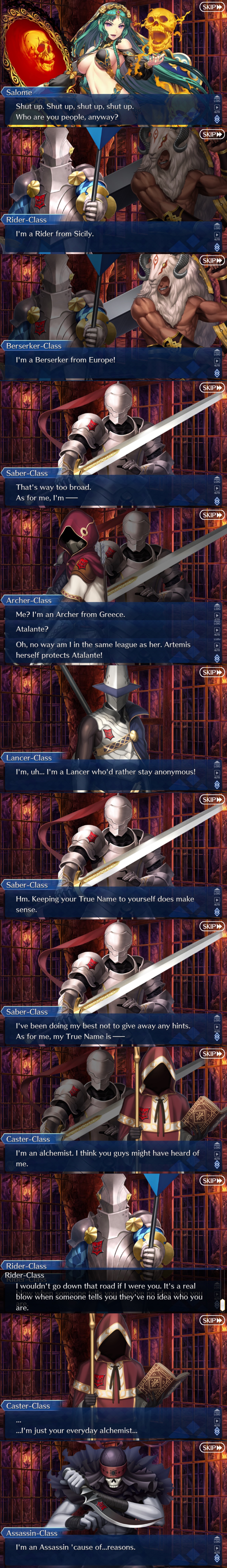 5-star:>Berserker Flat Escardos: Jack the Ripper is also there, transforming as needed for various attacks, normally taking the form of Flat's watch. In the first two Ascensions, his Noble Phantasm is From Hell. In the Third Ascension, Flat becomes Thia.>Alterego Prelati: First Ascension is Francois. Second Ascension is Francesca. Third Ascension is her original form as a fragment of the goddess Ate.4-star: >Pale Rider: Pseudo-Servant Tsubaki with Pale Rider serving as sort of a vessel. Tsubaki mostly just stands there and Pale Rider protects her, similar to Reines and Volumen Hydrargyrum. >Rider: Hippolyta (welfare)3-star:>No Name Assassin2-star:>Caster Alexandre Dumas (permanent FP gacha)Believe.