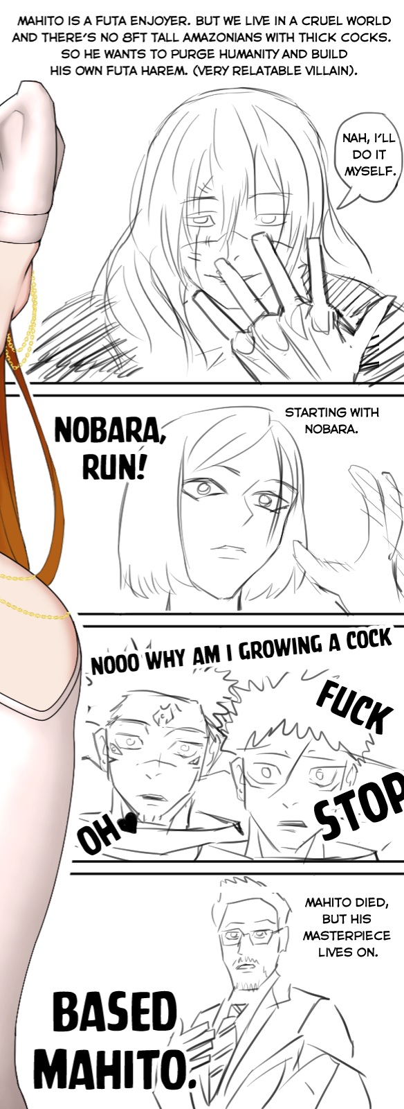 Gege just showed me the last chapter of Modulo and it ends showing Yuta fucking Maki while it says this is the face I make when I fuck you.