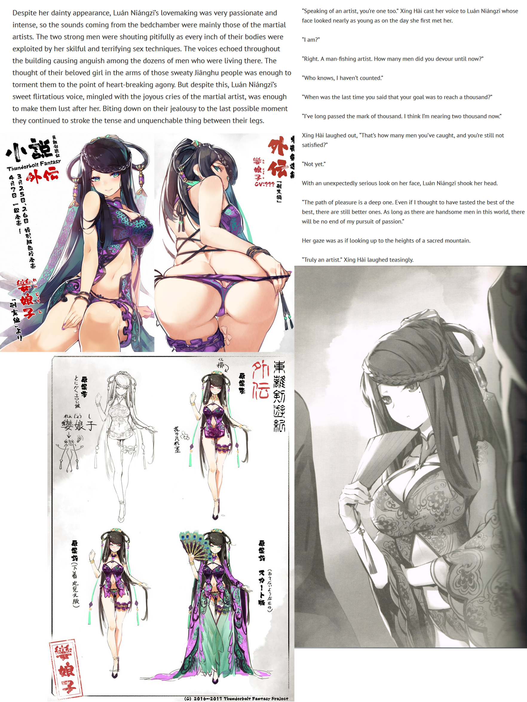 >>285292656https://setsunastranslation.wordpress.com/2021/05/09/thunderbolt-fantasy-sword-seekers-side-story-episode-of-xing-hai-chapter-4-part-1/>If she, as a human being, wanted to attain immortality, she had to leave the secular word, eat mist, and practice asceticism for a long time. But for her, to quit being the greatest woman of loose morals would be an impossible task. There was no choice but to do it with heretical, evil arts. Kidnapping young children, gouge out their livers and decoct them to make elixirs. That way the young child’s youthful spirit would be transferred to the one who takes it, and the ageing process is slowed down. It was a secret art of necromancy that only demons could know. However, this elixir must be taken once every half a month to have a lasting effect. In other words, a fresh liver of a child had to be provided every half a month. When Xíng Hài asked Luán Niángzĭ if she could do that, she easily answered that she could. Some of the men who worshipped her had originally made their living as bandits. It would be easy to use them to kidnap children.>The thing that Hóu Zhuă said he had gotten was a child which had been kidnapped from somewhere, tied up and put in a large box. The box containing the child was brought to a part of the mountain, from where it was picked up by one of Xíng Hài’s undead servants and carried to her house. In other words, the role of Hóu Zhuă was to obtain the liver of children which will then be used as an ingredient for the elixir. For the last few years, he had been obediently completing this dirty work, without fail and without anyone knowing who he is.Yeah, Kguy deserved to get bisected.