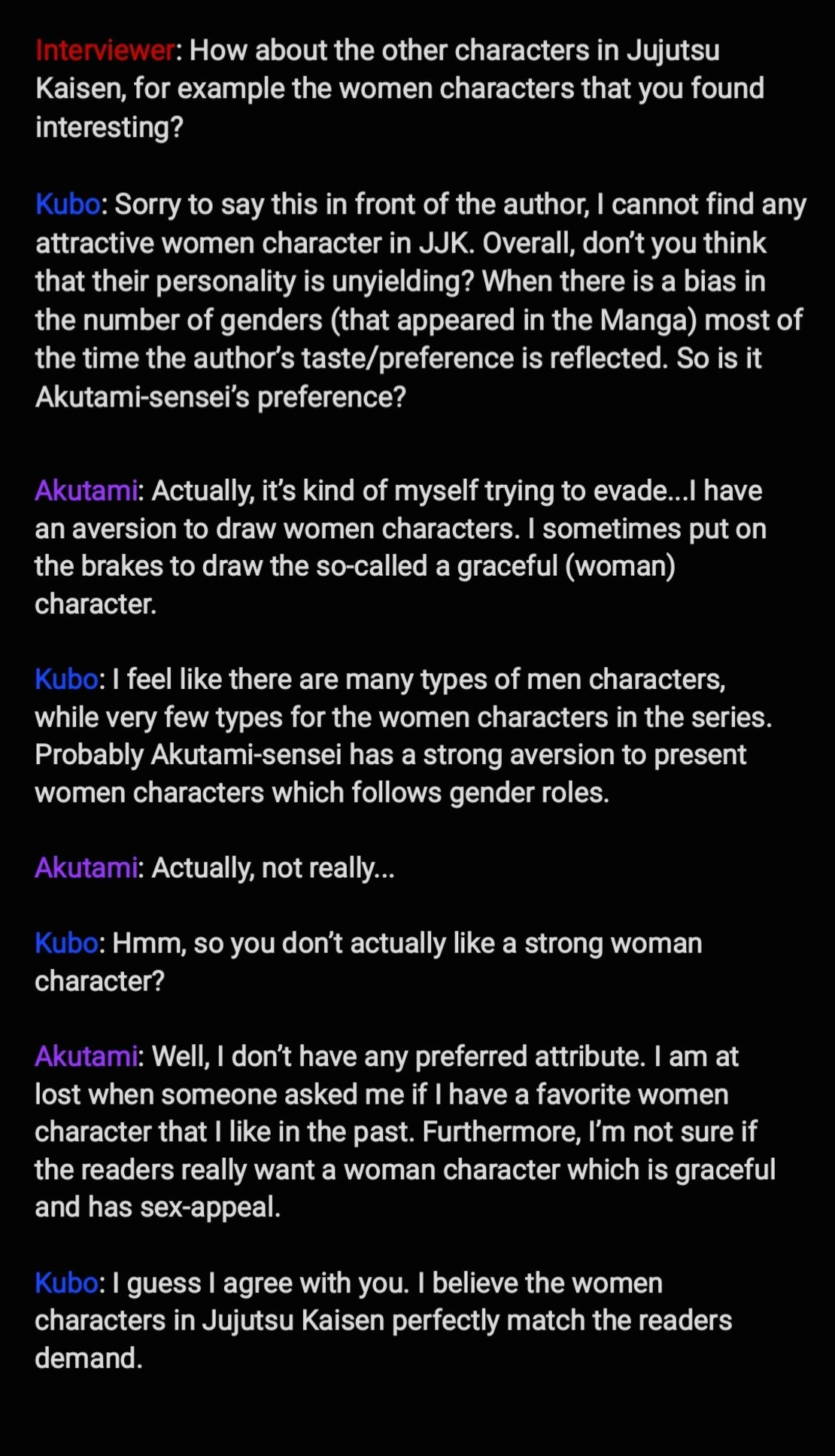 >>285263942>the women characters in Jujutsu Kaisen perfectly match the readers demandlmao