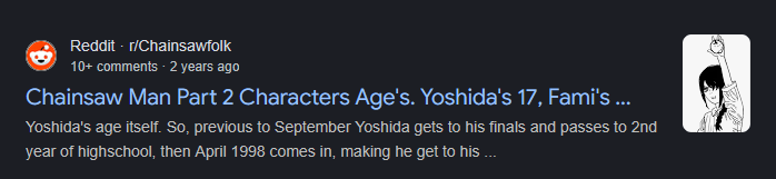 >>285267615Every Mangaplus comment is either negative or is talking about fucking Reze lmao