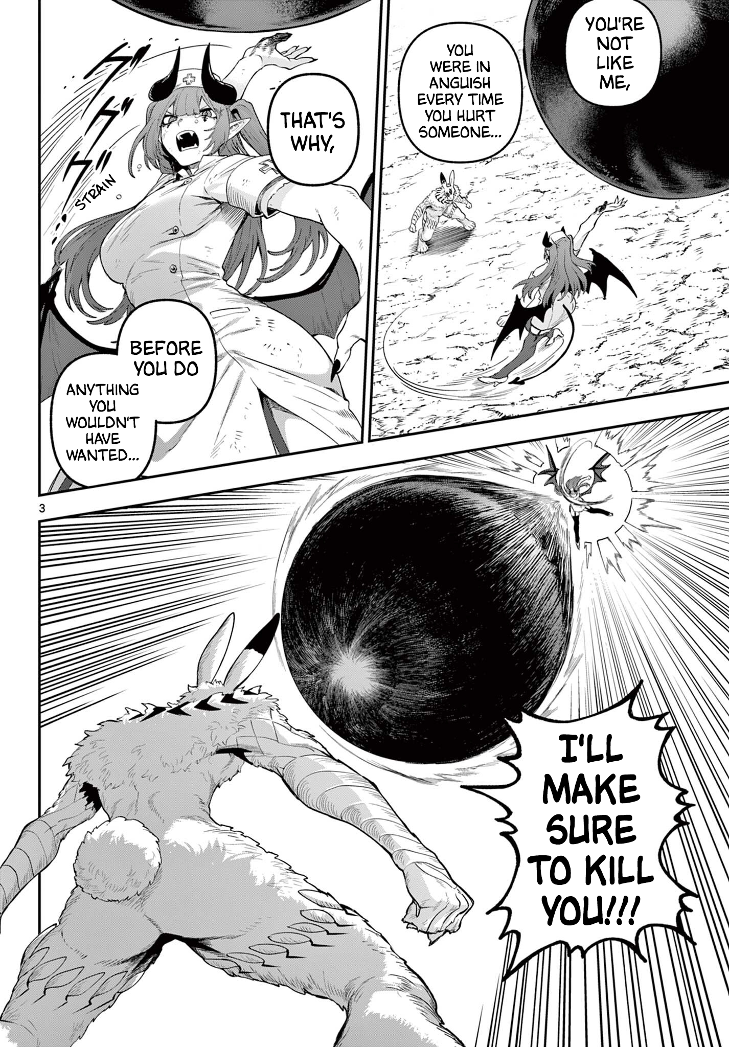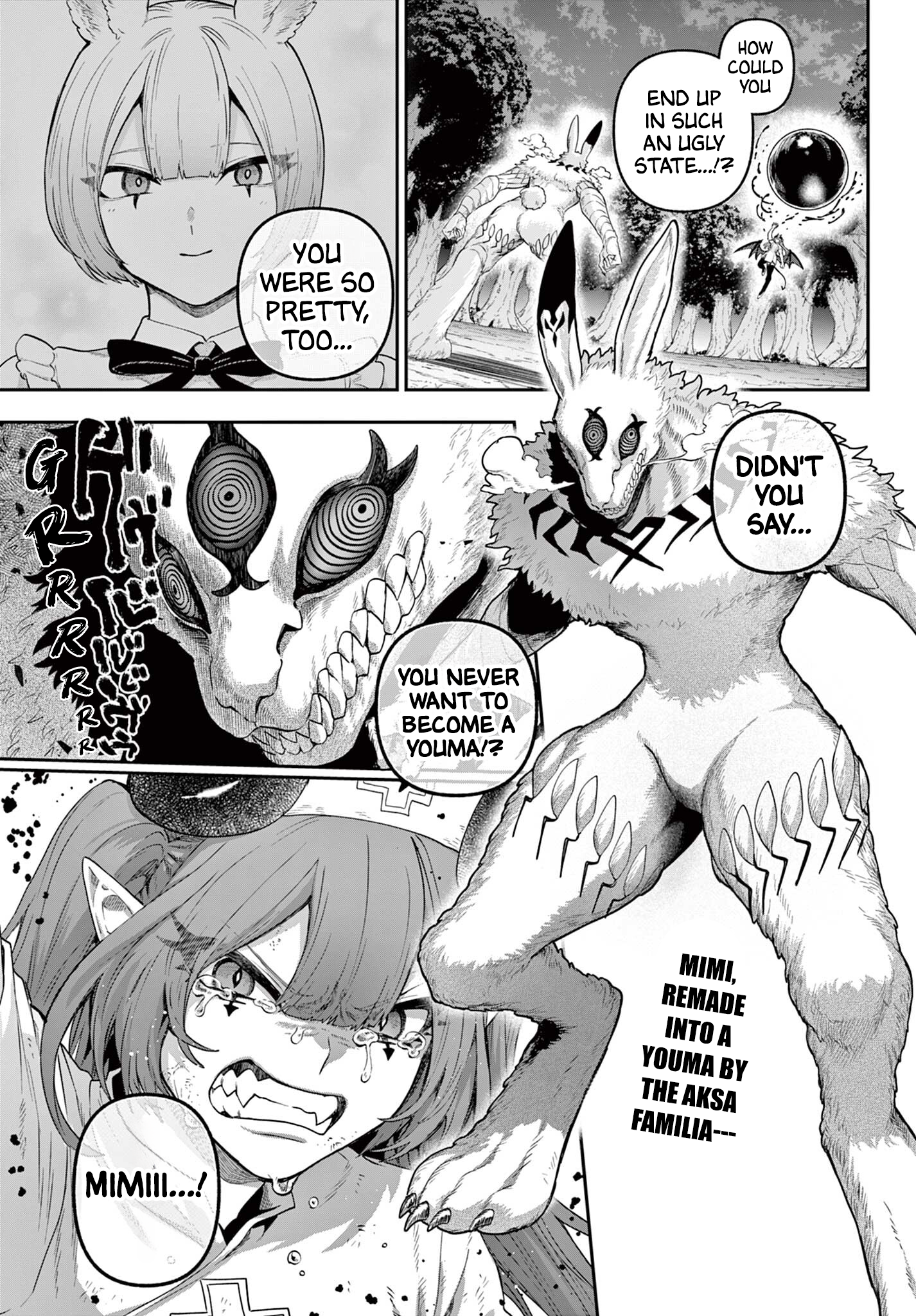 ...If she... y'know,turned Youm...I'd kill her.!'Cuz Nin'you and Youma are different beasts.I'm a Knight of the Order of the Divine Wolf.We kill Youma 'cause of the danger they pose.As a member of the Order, I would fight even you,if your turned Youma, Raitocchi.