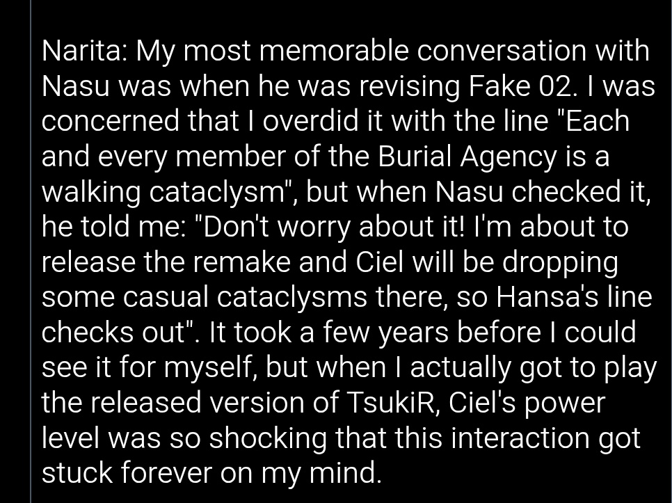 >>285286800Yeah, but any time they discuss it, Nasu's like nah bro you gonna do it.