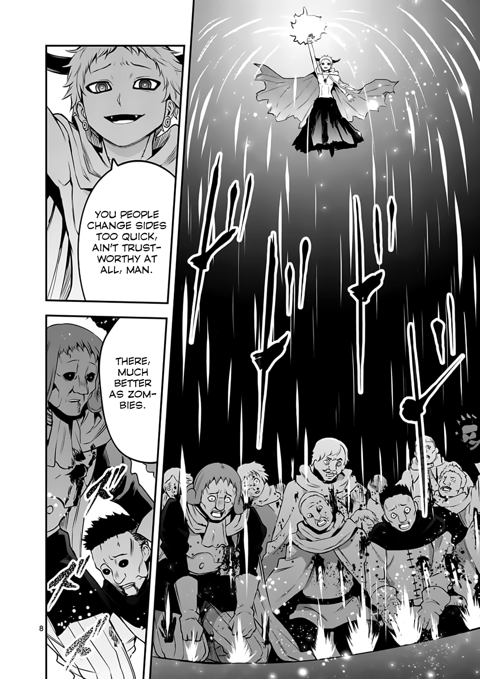 >Touka Scott, a radish farmer and trapper in the southern town of Cheza, lives a peaceful life with his beautiful childhood friend and neighbor Yuna, but he is nevertheless prepared for sudden monster attacks. He built himself a hidden pit-trap with bamboo spikes to lure unsuspecting monsters if they ever try to attack the village. A monster attacks and Touka fails to lure it into the trap with freshly roasted bacon. Thankfully, the local Hero saves the village from the monster in the nick of time. The hungry Hero tries to grab a bite of bacon after vanquishing the monster, only to stumble into Touka's pit-trap and die.