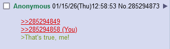 >>285294461>Implying you do>>285294480>Well done, me