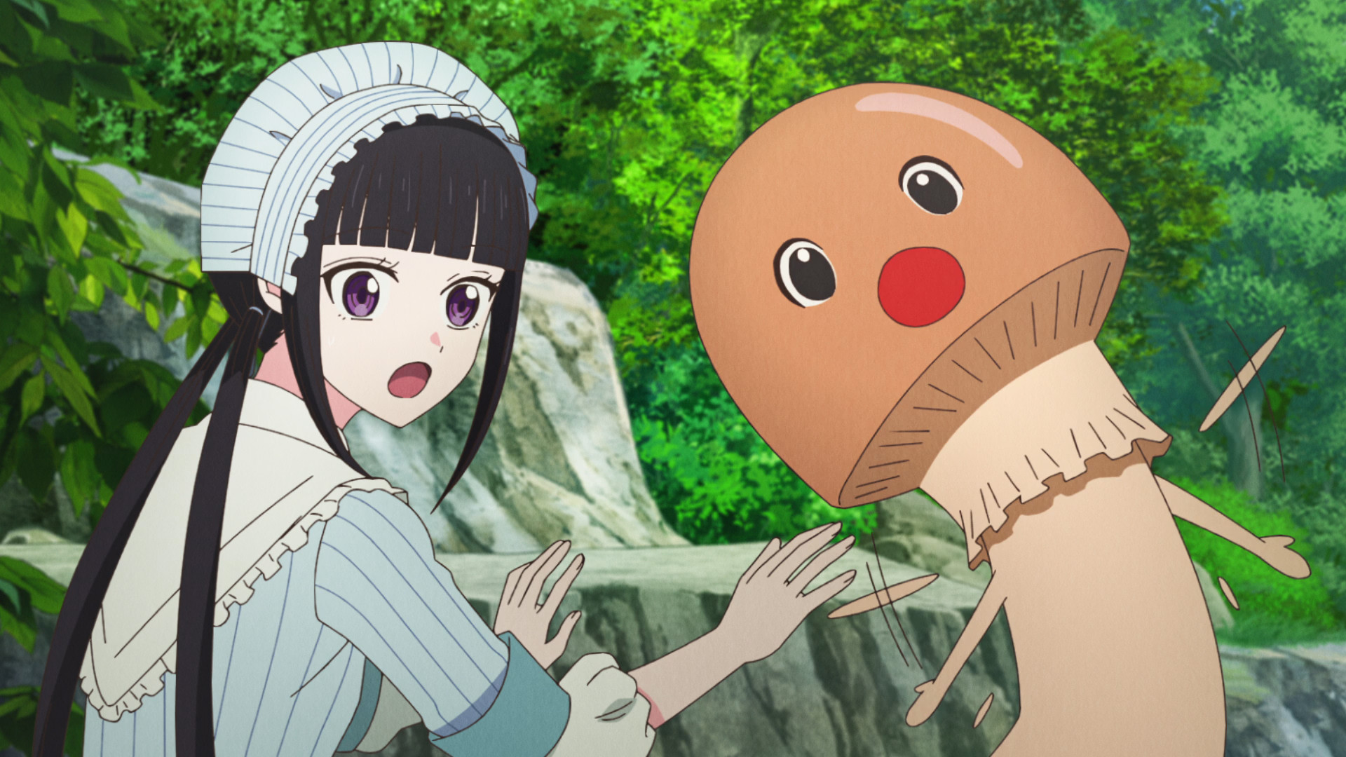 Somehow my downloader didn't download this when it premiered. The first two episodes were fantastic. Really liked the expressive hat.Poor floaty mushroom.Lol, a crow attracted to shiny things.Surprised they left the knife in him.Lol that CG mushroom.Master mushroom.Nice flying animation.What's the band name for the council?Water is cute.Fucking lol, the eastern one is just a bunch of stereotypes.Water is best witch on the council, what a cute fucking dork.Her mushroom defense cage is kinda cute.Quite the bomb they dropped at the end there.So mushroom master purified her as a child and raised her. ED is a bit more depressing now.