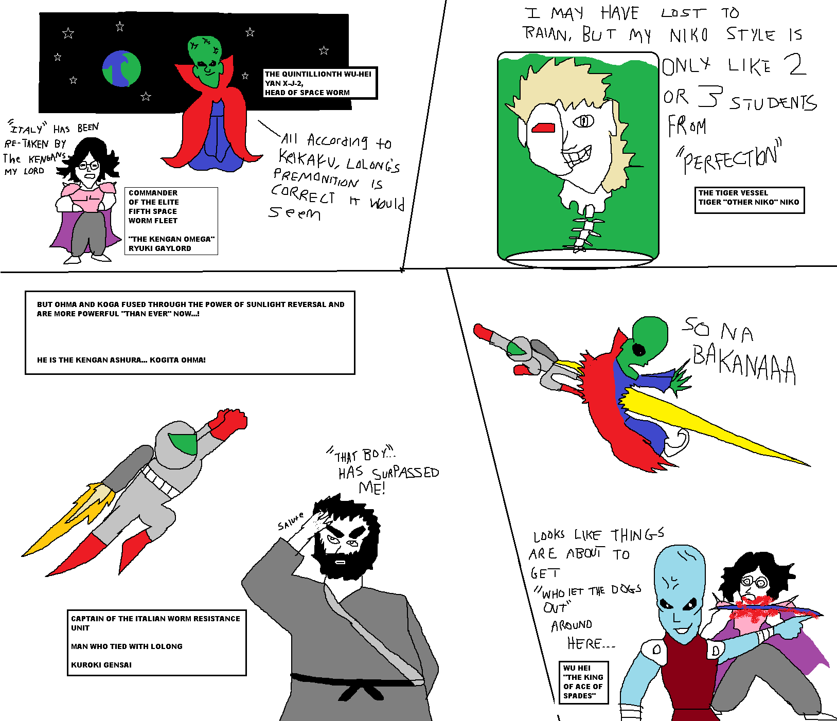 >>285345188It already jumped the shark on chapter 50. But some of the moments after chapter 50 that REALLY broke this community, solidified how irredeemably trash this story, and pretty much made it impossible for even those people defended chapter 50 to continue defending it include:1. Edward Wu's embarrassing demise.2. Lolong's anticlimactic fight (after 2 years of insane attempts at building hype from Sandwich himself).3. The humiliation rituals for Xia Ji and Yumigahama as a lame way to show Koga's development4. Shen Wulong literally killing his braincells to put himself on even footing with an opponent. 5. The entirety of the Real Champions Tournament being a complete and utter waste of several months worth of chapters.6. An entire arc spanning the course of like 3-4 months worth of chapters completely dedicated to fellating Ohma.7. Sandwichs's bizarre attempts at sincerely trying to portray Shen Luohan as being the most evil character he's written.8. Tiger Niko's emasculation process that turns him into Neko Niko.And a whole lot more.