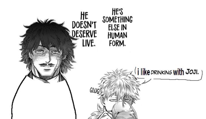 >>285348941I DESPISE this dude as a fighter, especially after his "I shut down my brain and stopped breathing" fight and the just utter retardation when he explained his plan then said fuck it were not doing it literally the chapter directly after, but I love his SoL comedy shtick of just hanging out with is bro and drinking like motherfucker doesn't want to be in this book
