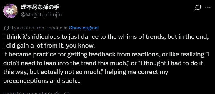 >>285354708Author of that novel has been writing on Kakuyomu, he's received plenty of feedback, but the issue with works that are boosted from the corporate side and immediately adapted into manga and anime because they have certain connections and with lightning speed without even receiving a bit of criticism usually end up overestimating how much praise they would receive.But stories which have went through the vetting of the readers as in actual people not corpos. Those tend to succeed a lot.