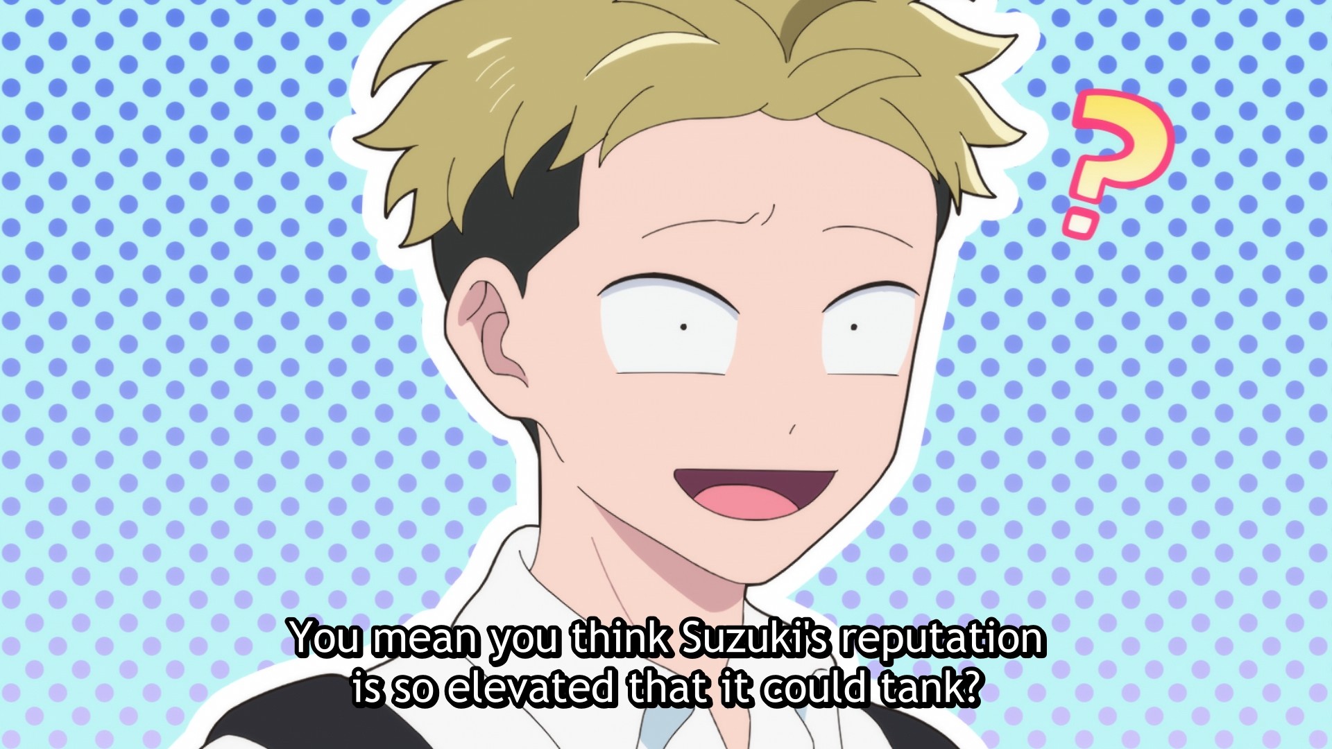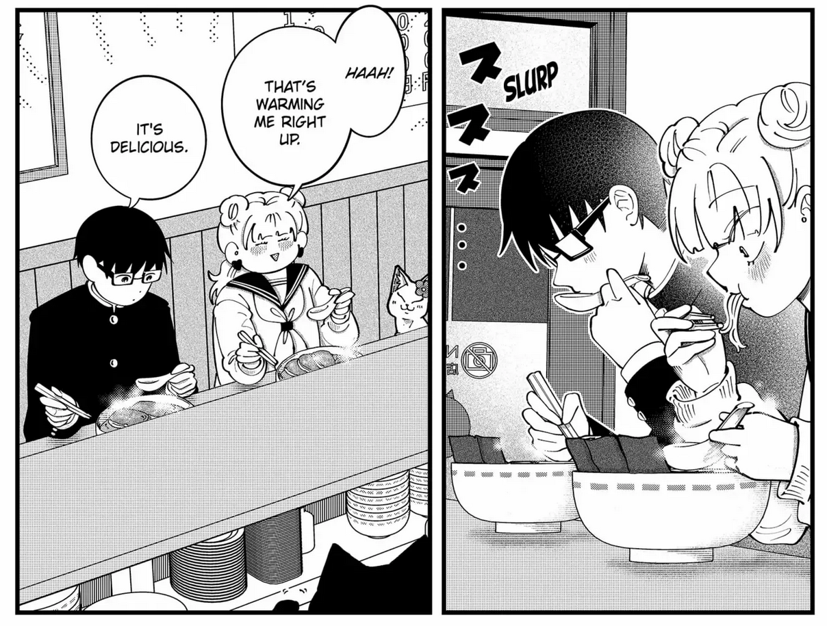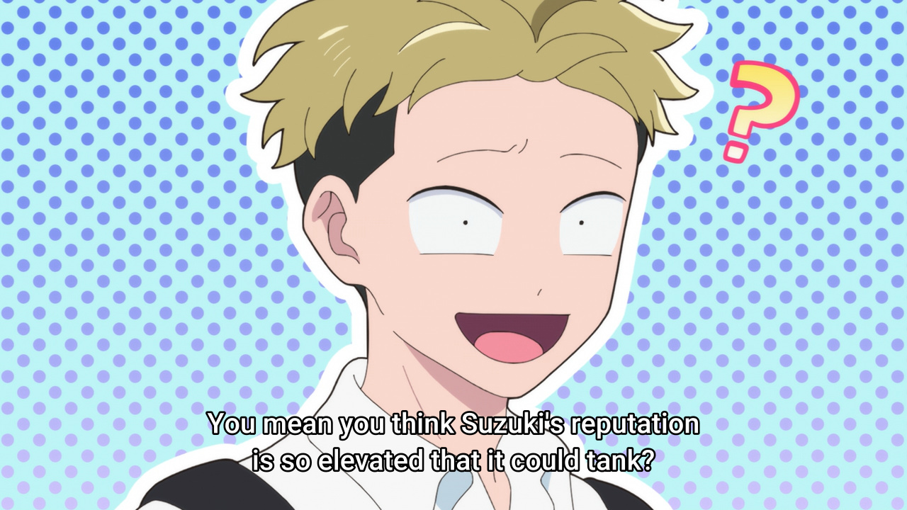 This is so much better than the flower blooms whatever anime from last year. Those characters felt so much less human than these two goofballs.Super fun show. What a great season this is.