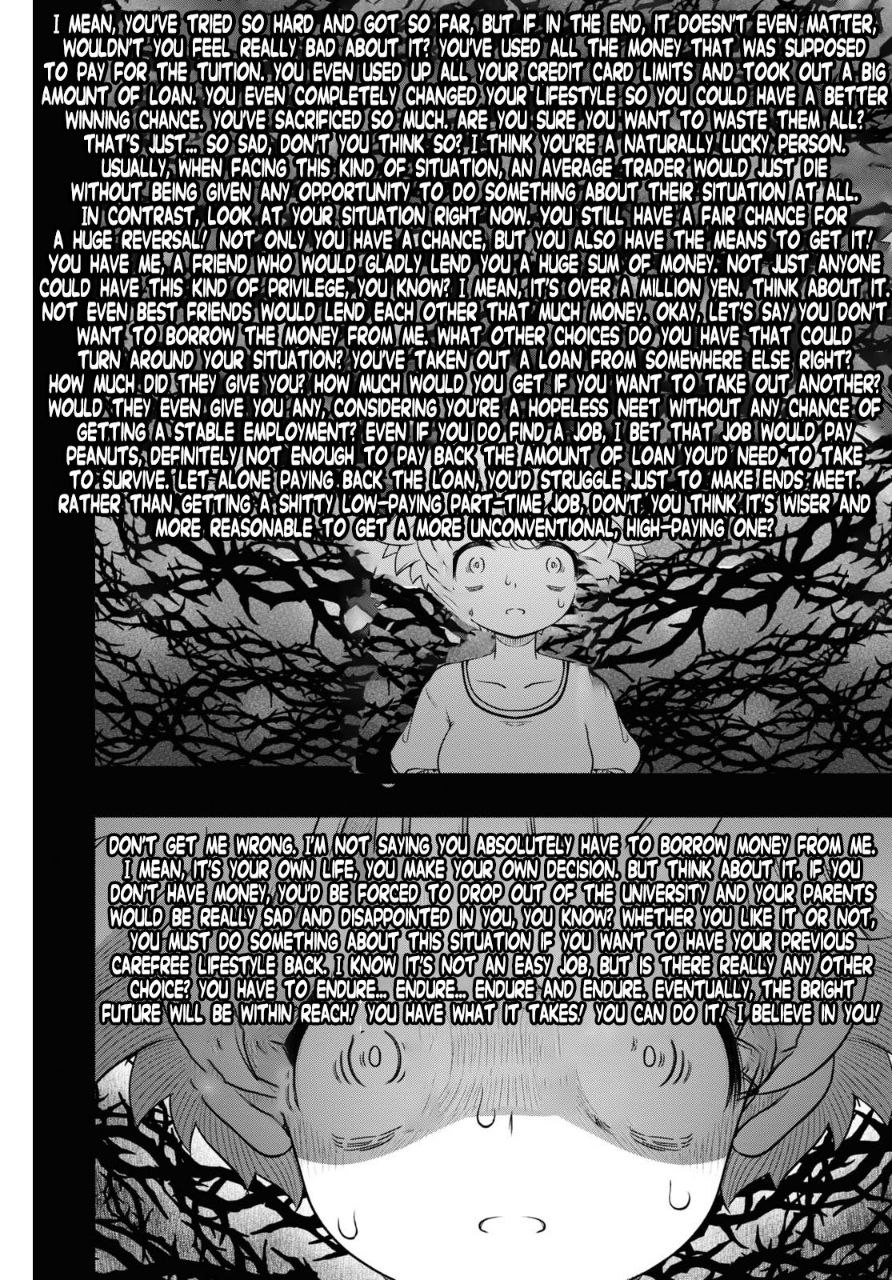 >>285397260I read this for a while, and to this day, I still cannot figure out how anyone could be this enslaved by greed.Every person is so obsessed with money that not one has any plans on how to spend it. MC's goal of paying off her mother's debt is just an excuse to start the plotTheir entire goal is just to acquire numbers after numbers. They are basically chasing after a highWhen you are in such a state, consider it God's blessings once you inevitably lose it all - at least now, you can stop and switch course back to what truly matters - the fact that you are going to die, and not one coin can be taken with you