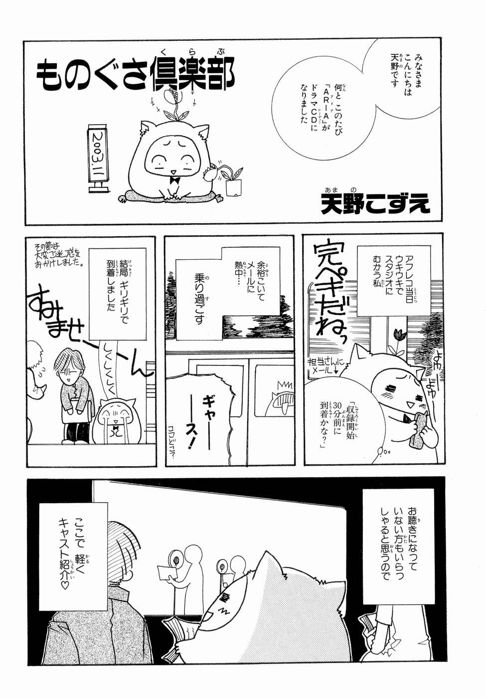 >>285406451let's give this a shotLaziness Club, Amano KozueHello everyone, I'm Amano.Somehow, Aria's been adapted for a drama CD!I was happily heading to the studio on the recording day.It's perfect~I might be there half an hour before recording starts? < texting the person in chargeI was so caught up in texting...that I missed my stop.Gyaaaa-su! Where am I?In the end I made it just in time.We deeply apologize for the trouble caused.Sooooorryyyyy!There's probably people here who haven't already had the chance, soI'll be providing light introductions for the cast