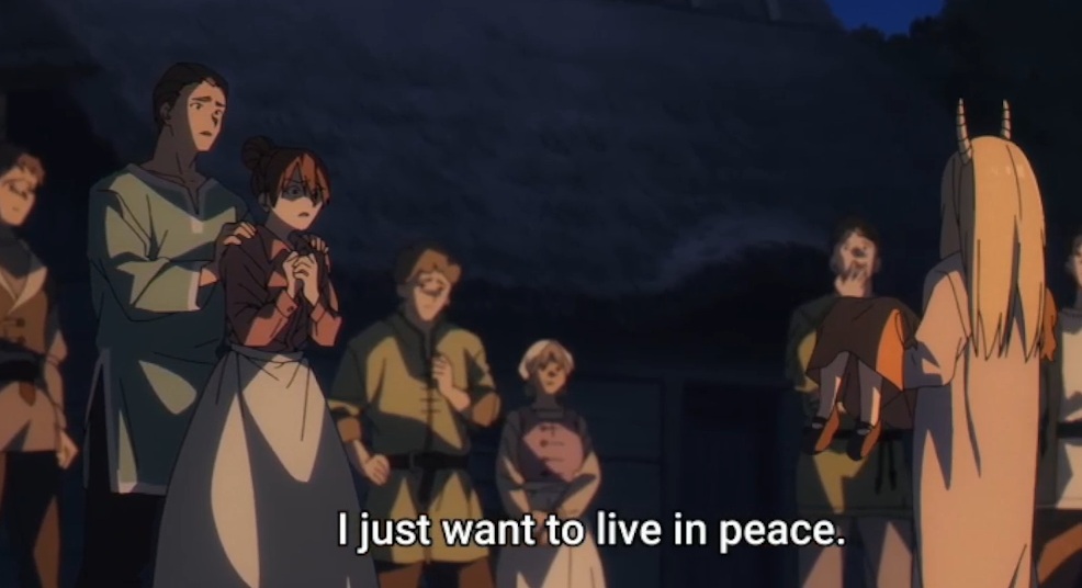 You know, I'm not sure they portrayed demons as completely incapable of peace. I'm posting the FULL scene here: https://files.catbox.moe/bgrhzu.mp4 since it's not on YouTube (it's there but in snippets), and I think the village could have handled this better.For one, the family whose daughter she ate (desu I can't blame them for this, the demon did EAT their fucking daughter) clearly held too much resentment over the demon girl for what she'd done. She says "Every day I felt your desire to kill me.", and I don't believe that was a lie. How do you integrate into a society when that is how they perceive you?I think the demon girl was ignorant, not evil. She ate the daughter, but that was an animal acting on its survival instinct. It'd be like getting mad at a wolf, it's an animal, dude. But from then on, as an intelligent creature capable of higher thought and speech, she wasn't shown to be deceitful until her life was in danger. She seemed to be getting along with the daughter of the village chief, they were playing together, it even looked like she was alone with the daughter multiple times and not once killed her. The only reason the demon girl killed the village chief was because of the family whose daughter she ate. She believed she had to make amends for her own safety, since she felt their desire to kill her every day. In her ignorant mind, the way to do this was to give the family a new daughter. The village chief's daughter was the closest possible candidate, but already had a parent... thus, she believed she had to kill the chief in order to give the daughter to the family.