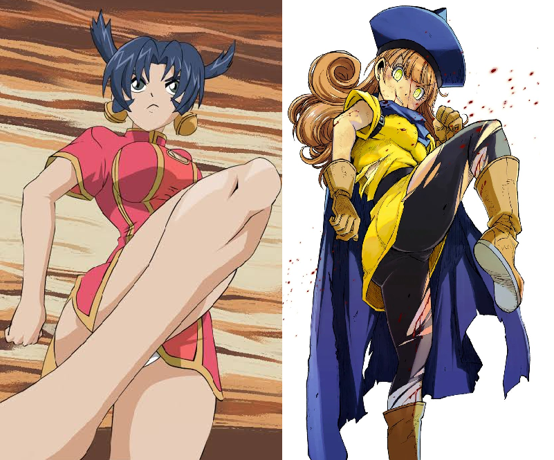 I'd Renka Ma, boobs or ryona, like the girl on the left in the style of the right image
