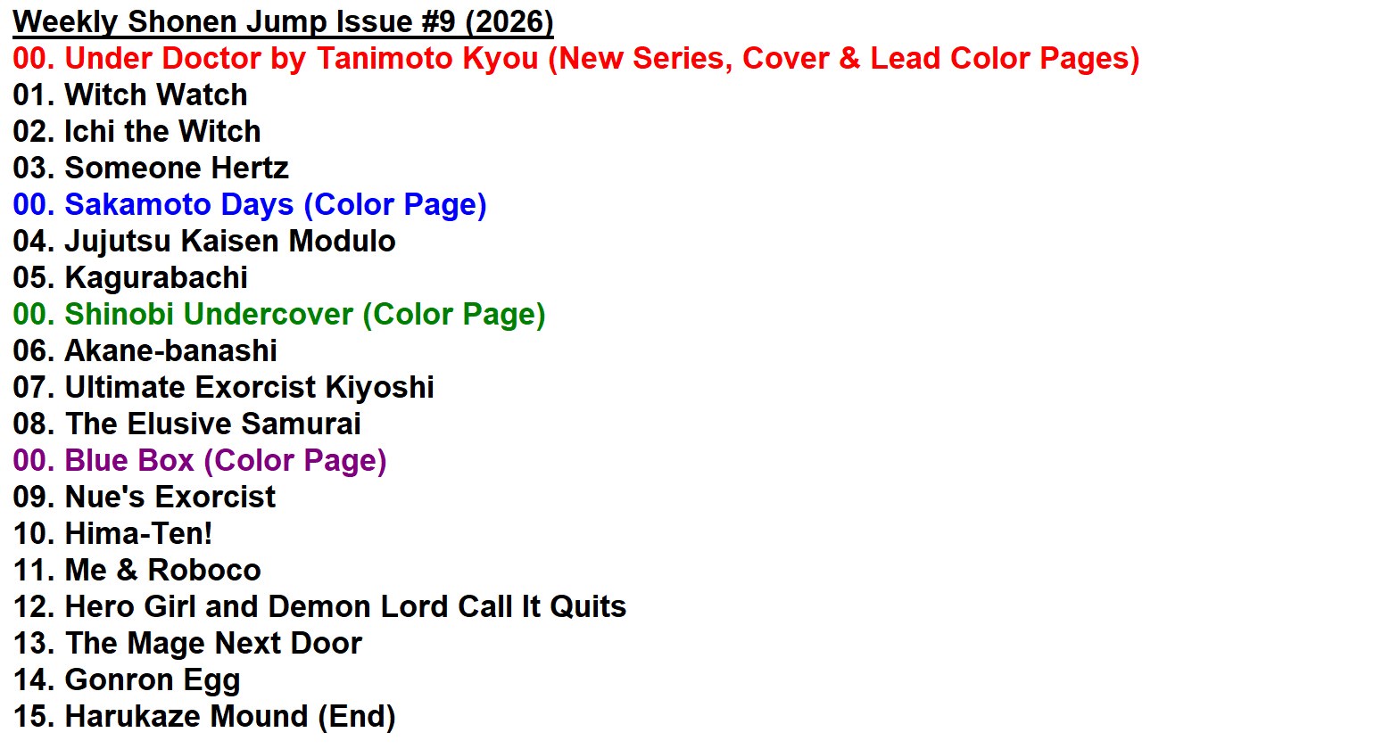 Shoseki 1/199. Modulo 122. Kagurabachi 1029. Someone Hertz 1113. Akanebanashi 20288. Shinobi Undercover 6310. Himaten 7