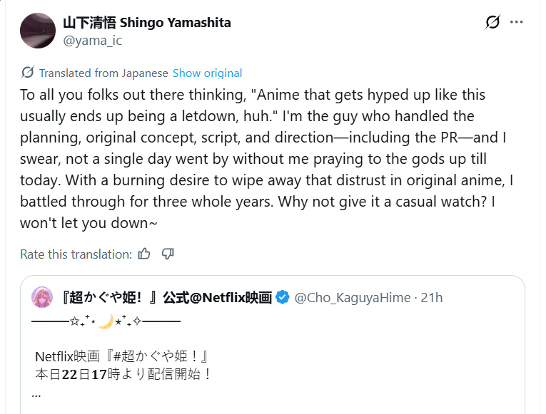 >Kaguya-hime is now a fucking live streamerno thanks, I'll just rewatch Takahata's Kaguya-hime.
