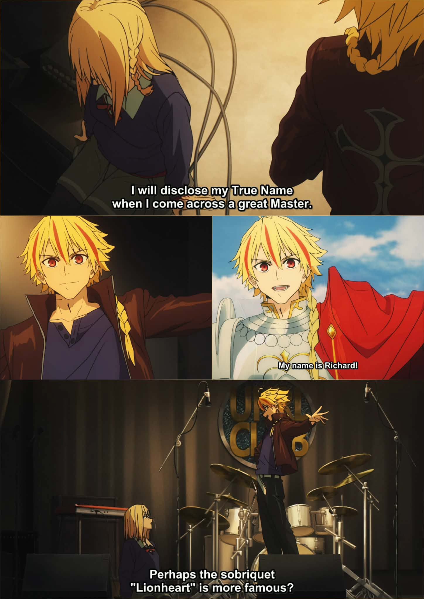 >>285592861>The reason he can only roar in Stay Night is because, even as a Berserker, he was going to try and lecture Illya until she used a Command Spell to bind his tongue.Source?